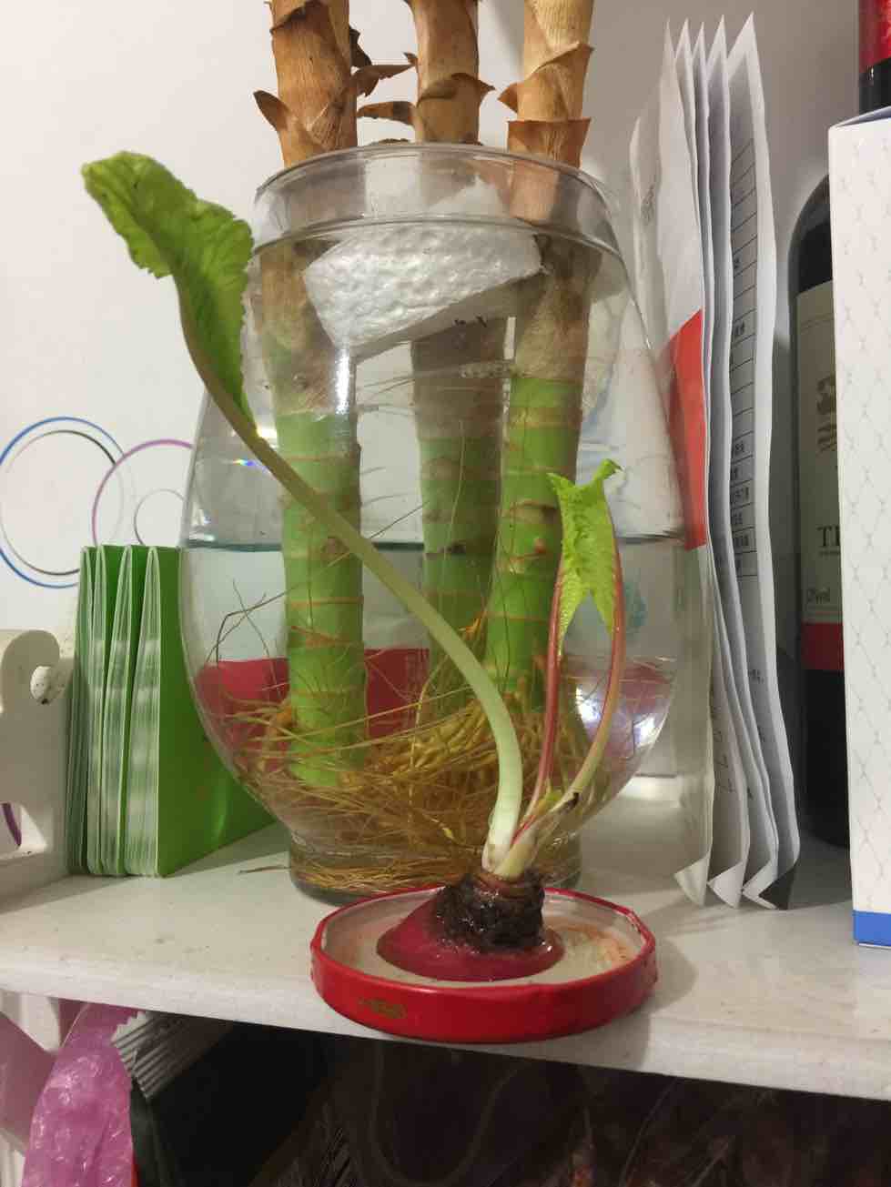 萝卜是别人送的,放地上两三天了,拿出来,竟然发现发芽了。不能浪费,切下来,用个瓶盖子,装点水就是一个盆景啊