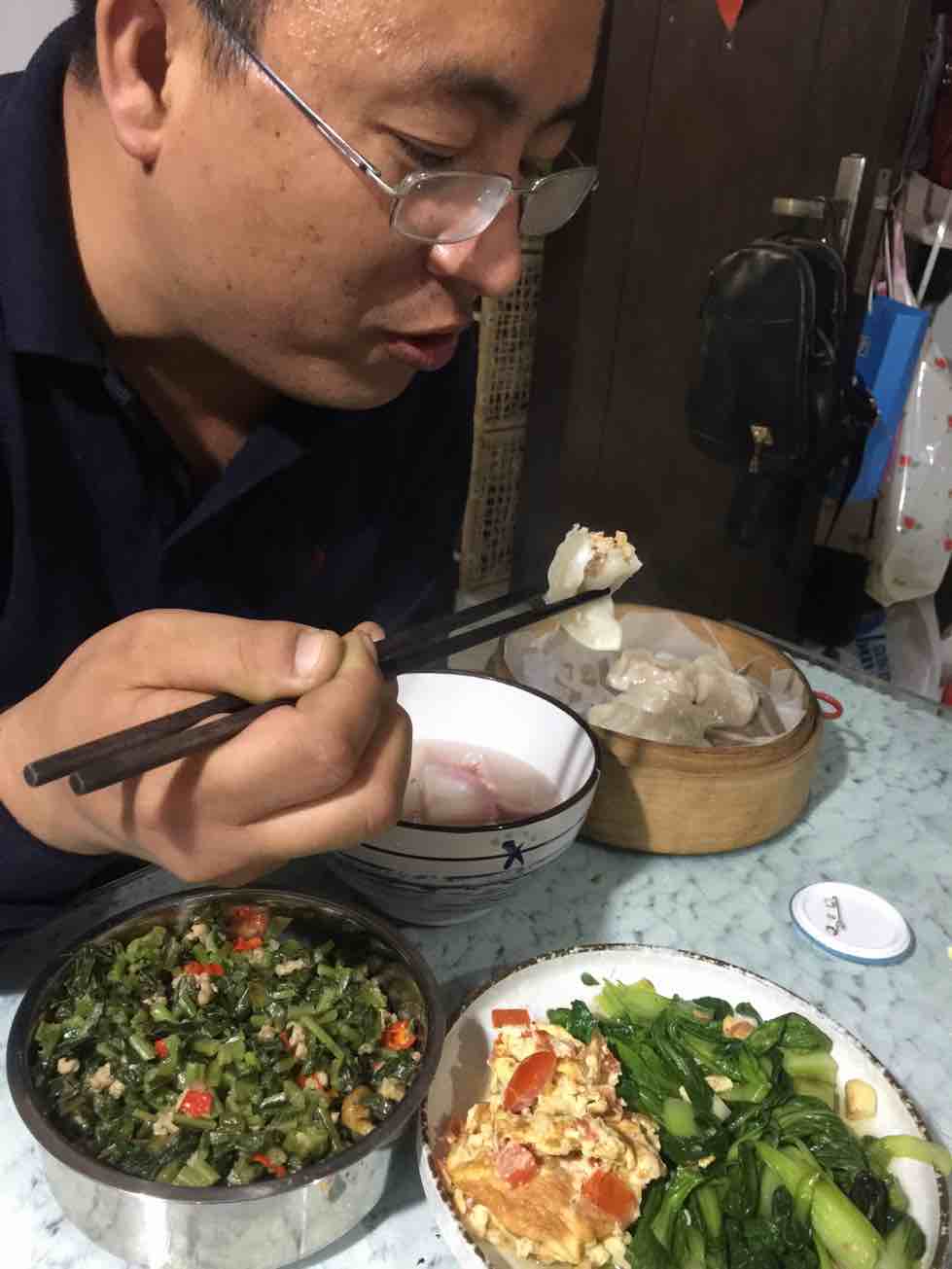 想起他北方的,冰箱的饺子翻出来,蒸了一笼。结果11点半才回。。