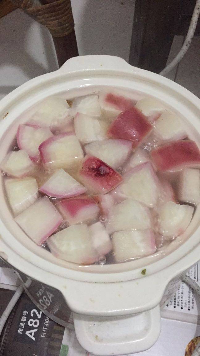 手忙脚乱的,用电炖锅给他炖了一锅萝卜骨头汤。