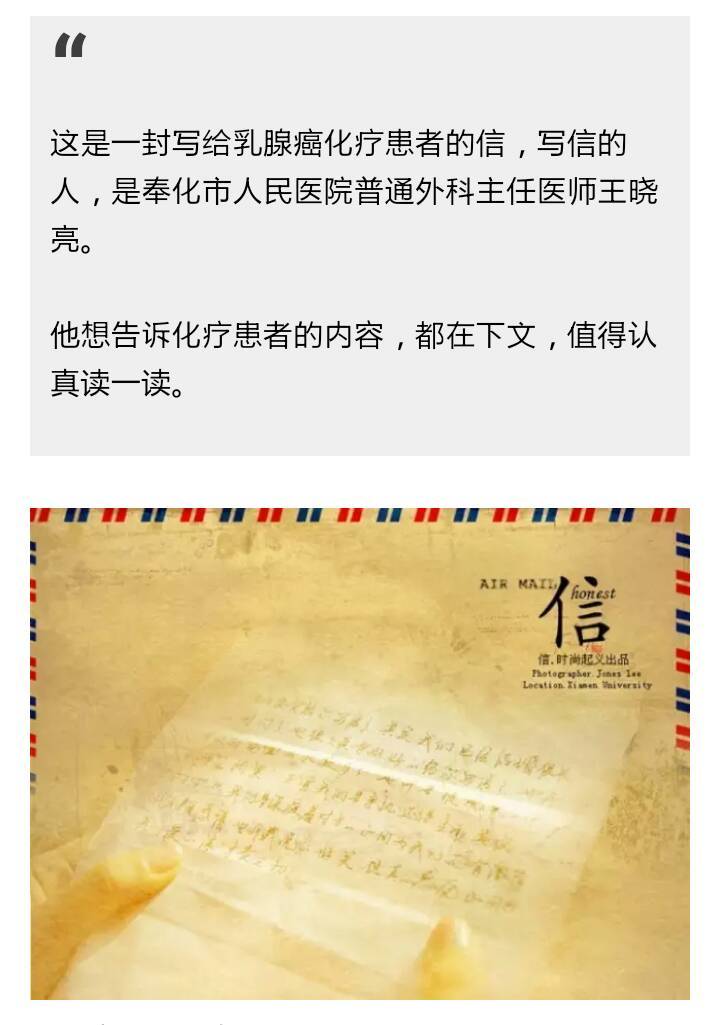 这是一封写给乳腺癌化疗患者的信,想告诉化疗患者的内容,都在下文,值得认真读一读。