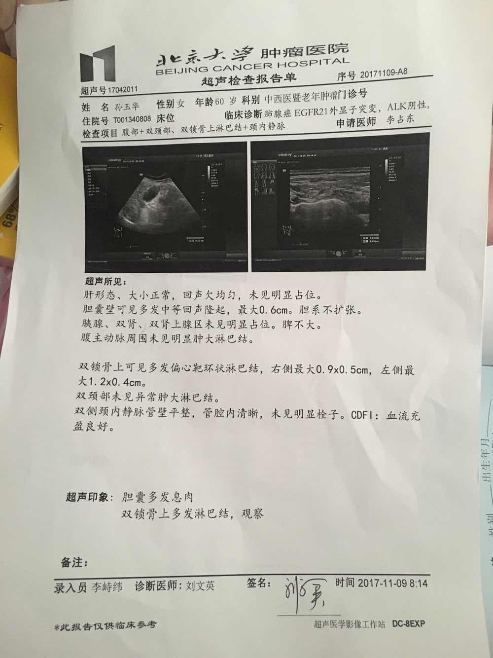 先别着急,过几天再做个b超,我妈妈手术后也有锁骨淋巴结,后自己消失,也许是炎症,过一个礼拜再去做b超,其他结果如何?