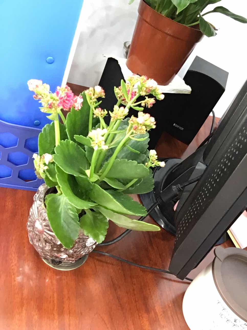 早上上班来路上买了俩盆栽。一盆多肉和一株长寿花,开始不认识,老板说了我也没听清,就觉得精致,回来微信给钱老板,又问是什么花......长寿花,名字不错,长寿,活到99