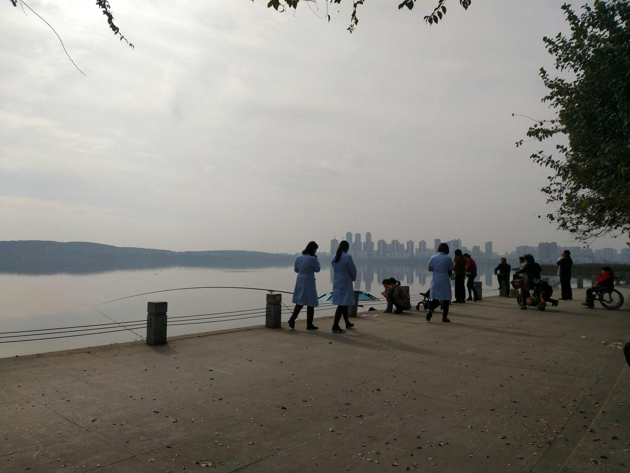 南湖边晒太阳