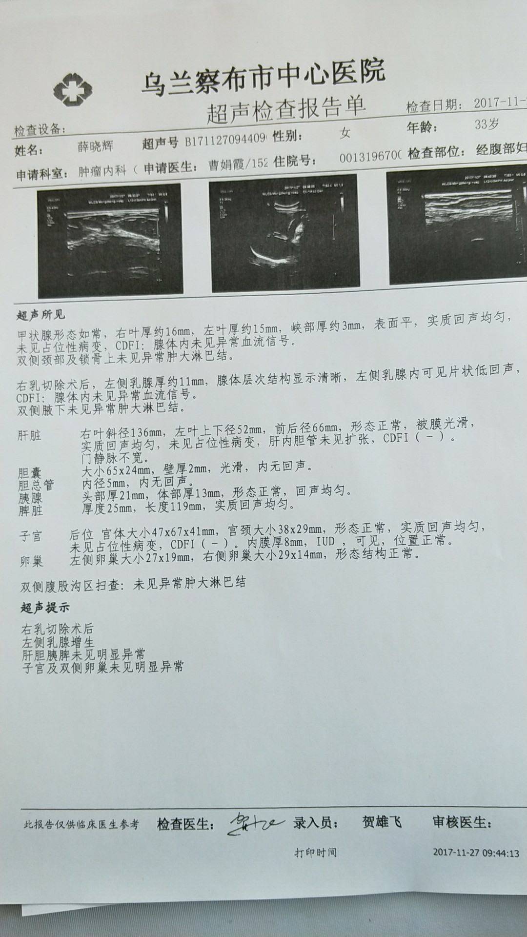 报告显示没什么事。