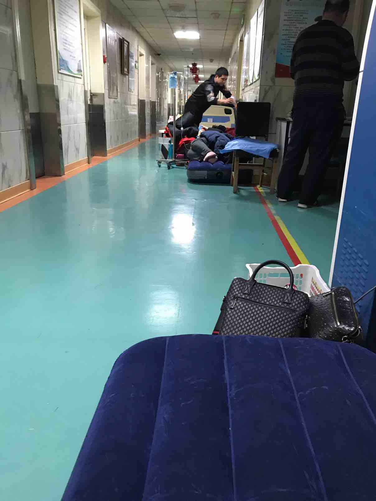 ,然后又流了点东西,我以为是破水了,赶紧喊老公,我说好像流水了,老公一个机灵就坐起来了,我说我赶紧去厕所看看,没想到是鲜红色的血,直往地下淌血,把我吓得不行。赶紧换衣服准备去医院。先去的最近的沈阳医大一院,那的大夫问了情况,让我赶紧去盛京医院。由于路不熟悉不好找,就直接打车去的盛京。检查化验花了1000快钱,然后让我住院,凌晨四点左右到了住院部,根本没有病床,护士让去外面买个充气的气垫子放在走廊,这一天都是在气垫子上度过的,简直太痛苦了。昨晚才腾出个闲床,不过还是在走廊,比起气垫子舒服多了。2天时间抽了16管血,做了2次彩超,2次胎心监护,每天扎吊瓶,明天要接24小时的尿,明天 下午1点去住院部四楼做心脏和膀胱的彩超……