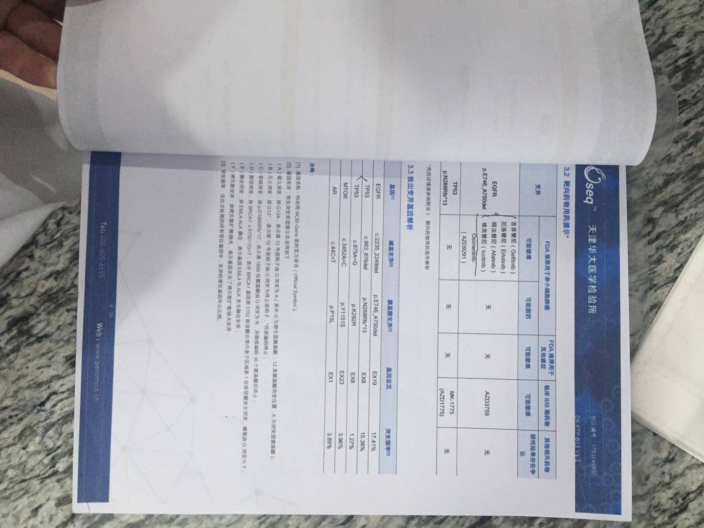 陈波医生三代的9291有耐药表现后,患者做了转移淋巴结的活检,拿去做基因检测,发现以下结果:EGFR19缺失突变继续存在,同时检出TP53(这个被认为与耐药有关,也有观点认为没有关系)