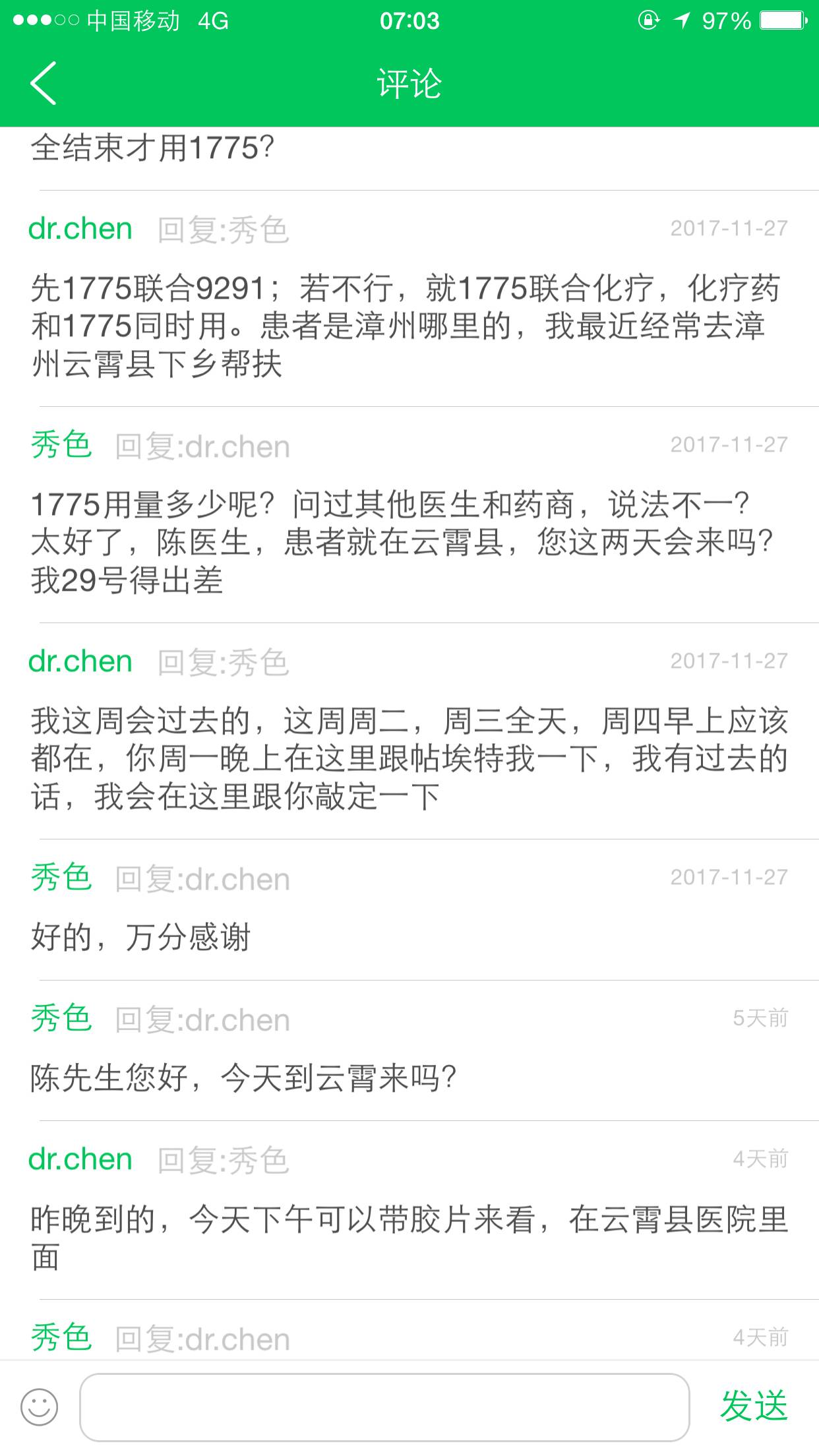 陈波医生为了解开这个疑惑,陈医生点击了患者的资料,想看看她其他帖子或者互助里提供过的信息。陈医生看到患者是漳州的,就问了一下是漳州哪里的。因为陈医生近半年在漳州云霄县帮扶,时不时会过去云霄。竟然很巧,患者刚好就是云霄的。然后陈医生就约了一下面诊患者和看实际的CT胶片
