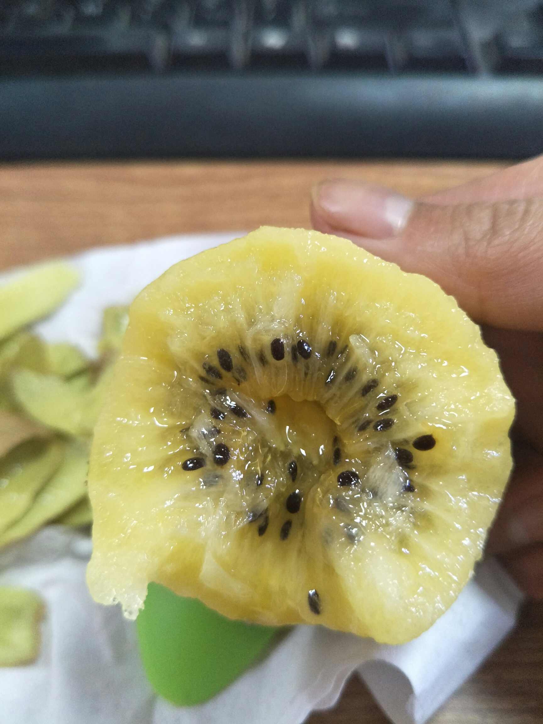 我也喜欢吃,不过喜欢绿心的,酸酸甜甜的