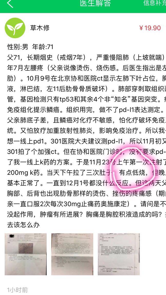 陈医生,我想问下如果我爸爸基因测试没有突变,是否可以考虑测试一下pdl1表达值,今天看到snoopy的帖子,看到他爸爸肺腺癌四期到现在停药20个月均没有复发,似乎效果很好,他也提到,如果高表达的话尽早尝试pd1会比晚期效果来得好,而您上文也提到,那些经历过n次化疗,肿瘤不断发展的,再尝试pd1可能效果甚微,不知道您觉得我这个想法如何?尽管现在pd1正负面报道都有,但任何可以根治或接近根治的方式,我们都想去尝试!所以想听听你专业的建议!