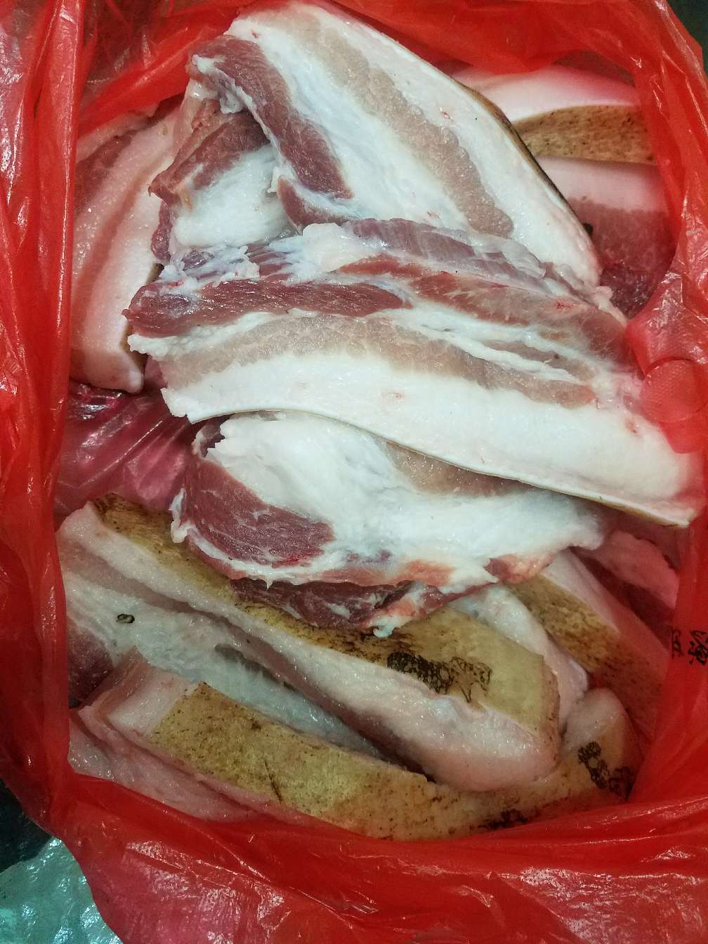 寄了两包,本来是教我两包合起来做颜色会更好看,更有味道的,但两包就要做13一14斤肉!可是当时我这天气又不是很好,又经常下雨。老公就说我没做过,不知道做得好不好吃,也怕做多了怕到时候发霉了,那肉就浪费了!因为他之前做过腊鱼,结果就是雨天,那鱼就发霉了,最后扔了,所以怕了!于是我就听他的,先做一包,买了7斤五花肉!