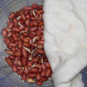 花生芽生长期间始终保持黑暗,一般在室温条件下,8天左右可产一茬芽苗。