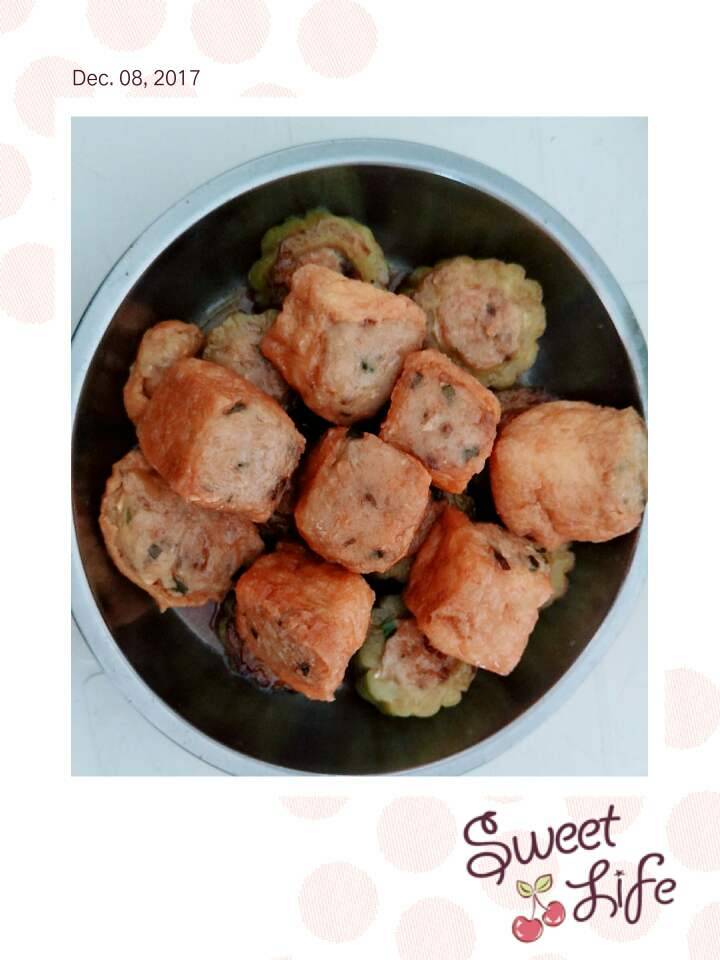 把苦瓜塞好了之后,就到豆泡啦,同样做好了!
