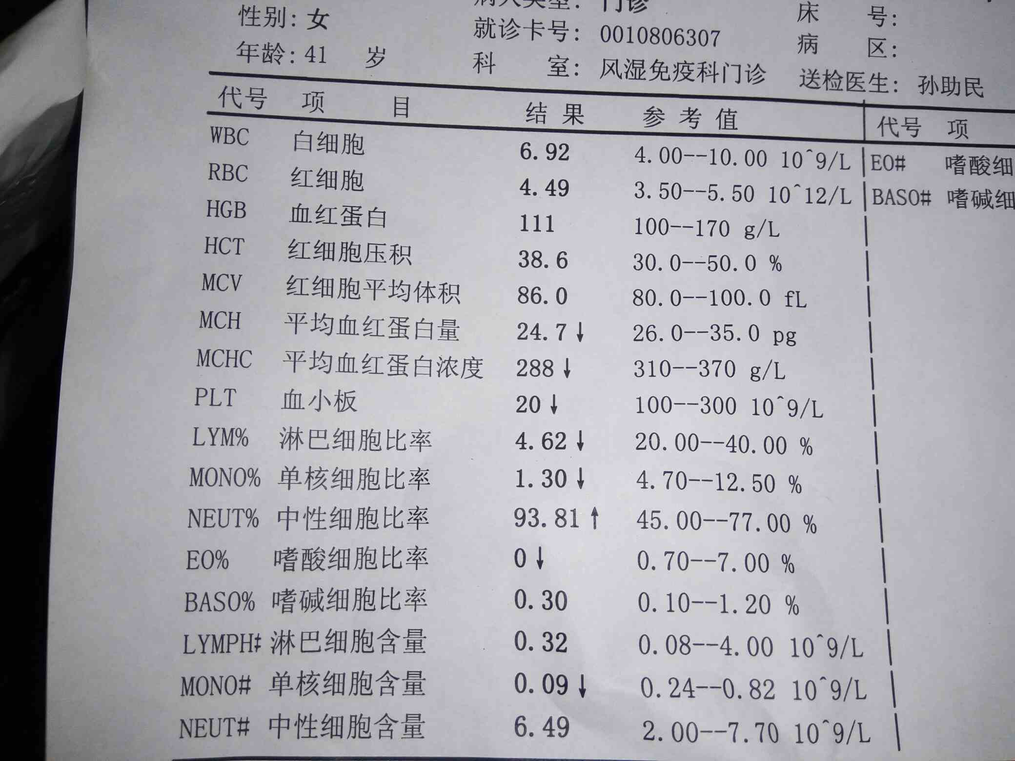 我也是血小板低的,之前也是打过丙球,tpo就是奥比特也打过,因为这些药都是药效的,所以当时都升上去了!之后药效过了就往下掉了,后来改了方案就是激素加甲氨蝶呤和环孢素,但是后来环孢素效果还是不明显,跌跌撞撞的过程,现在就是激素,甲氨蝶呤和硫唑嘌呤