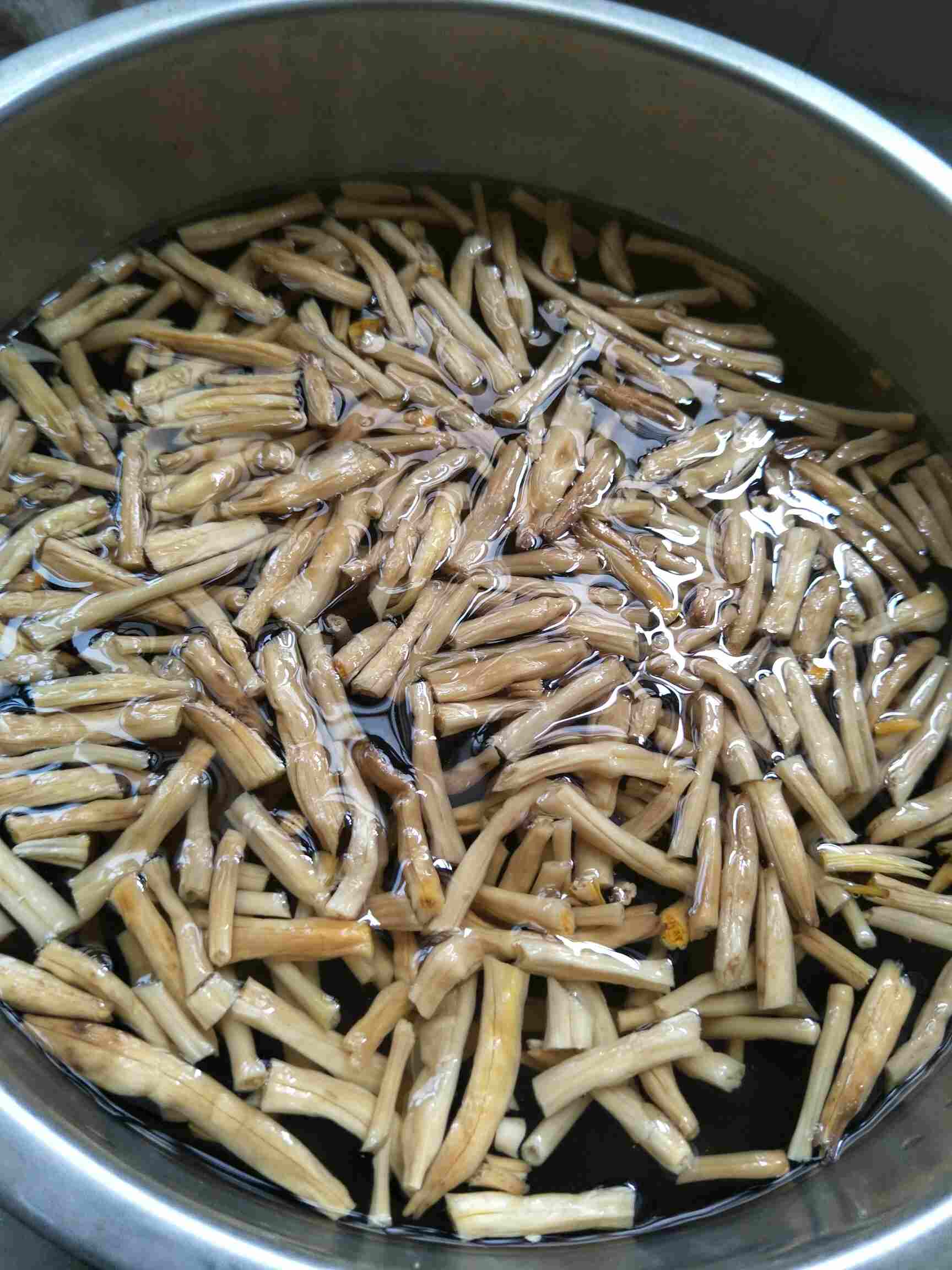5.黄花菜捞起来,用蚝油,油加砂糖拌好,备用