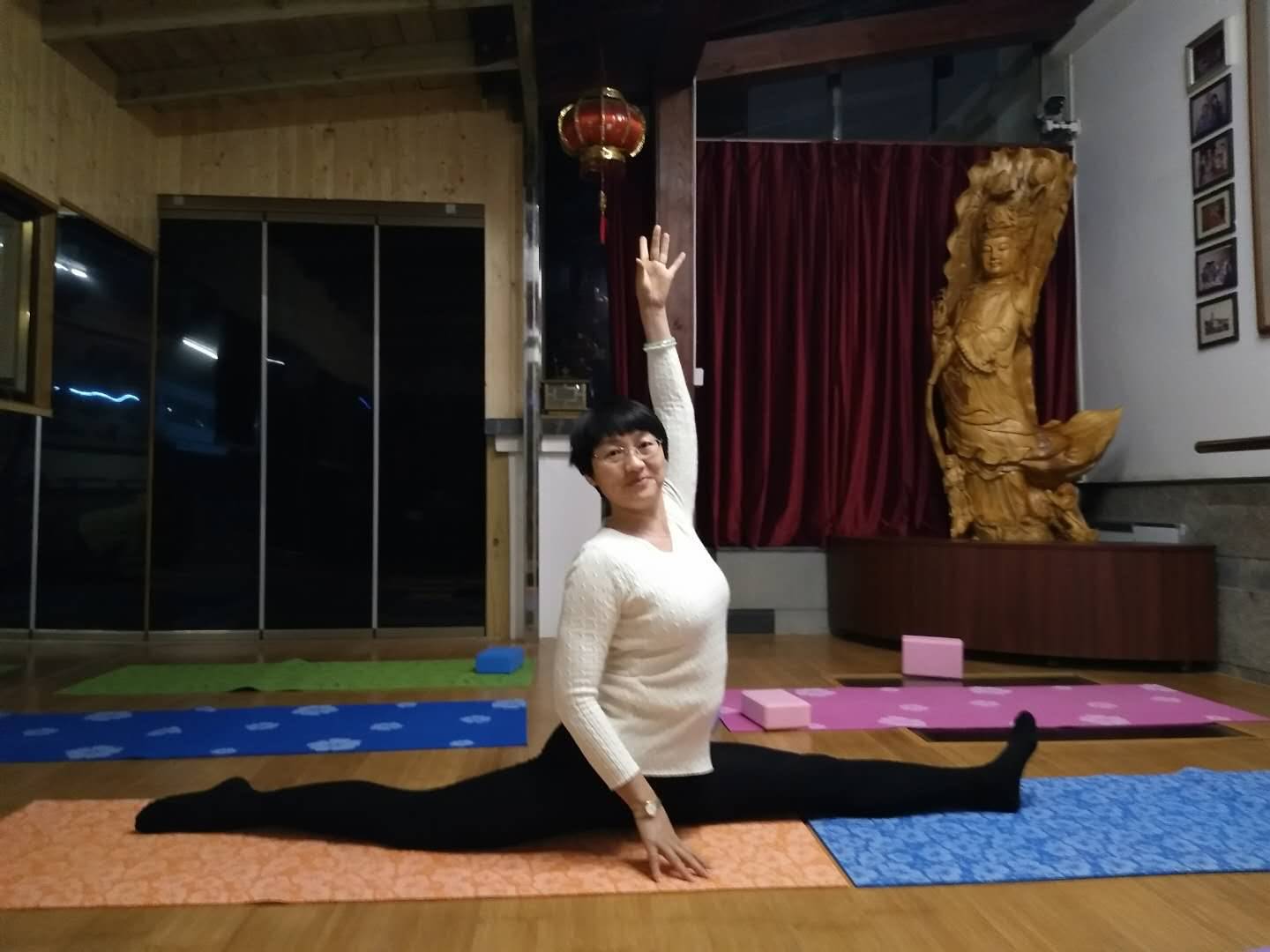 刚生病休养那段时间,韧带弹性和力量退步很多。这一年恢复上课和代课,虽然体能恢复不少,但受疾病、药物的影响,我很清楚已经不能回归到生病前的状态了。现在去馆里上课,中级课的后半节课已经明显感觉力不从心,但我依然保持平常心,像在课上对会员说的那样,做到自己舒服的位置,不去跟别人比。