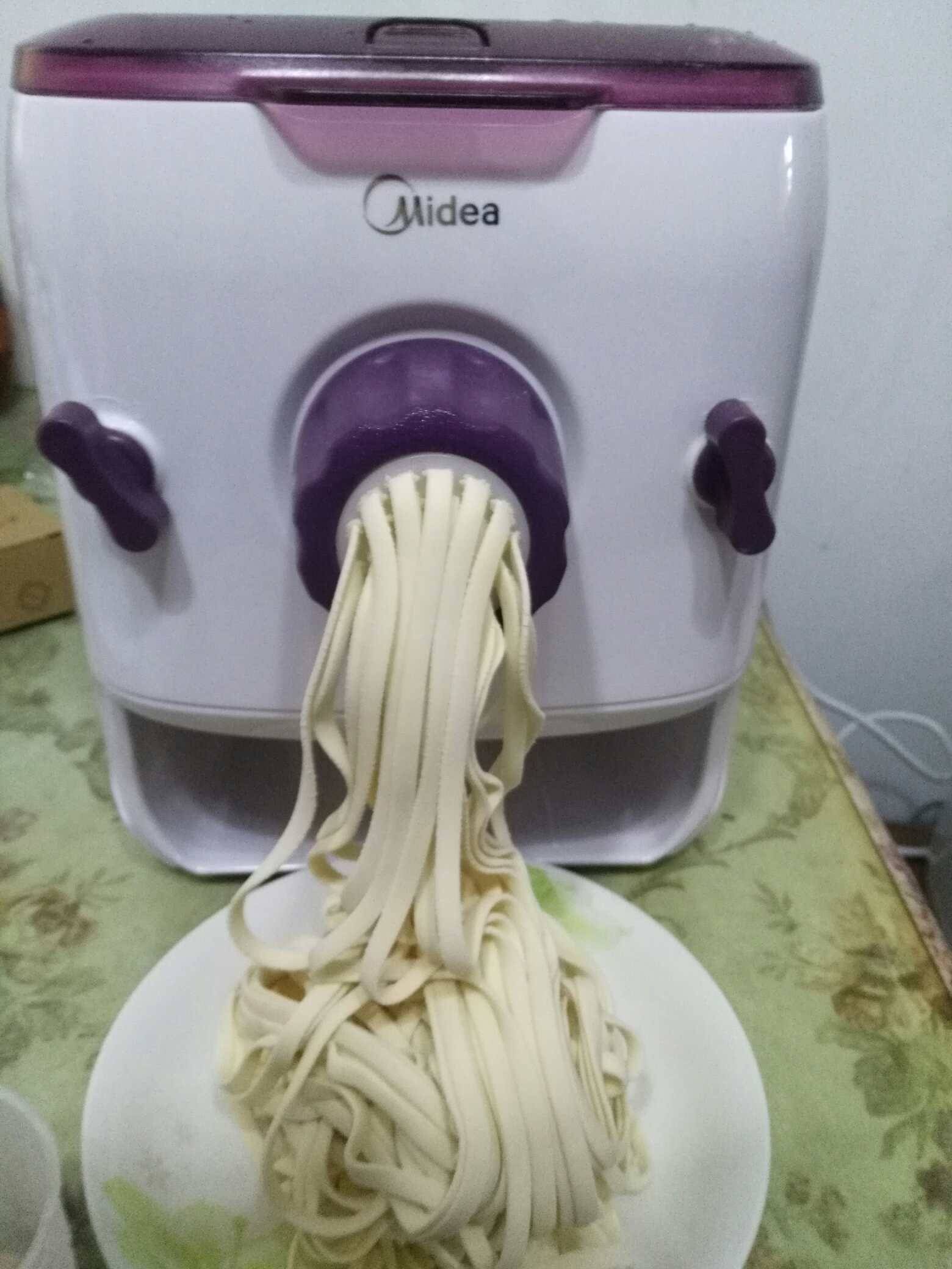双12看了一款面条机,上面有很多功能,宽面细面空心面,还可以做饺子皮,赠送了包饺子器,京东网购速度超快,13号货就到了,今天下雨正好在家里,试了一下效果还不错,今后想吃面十分钟就搞定。