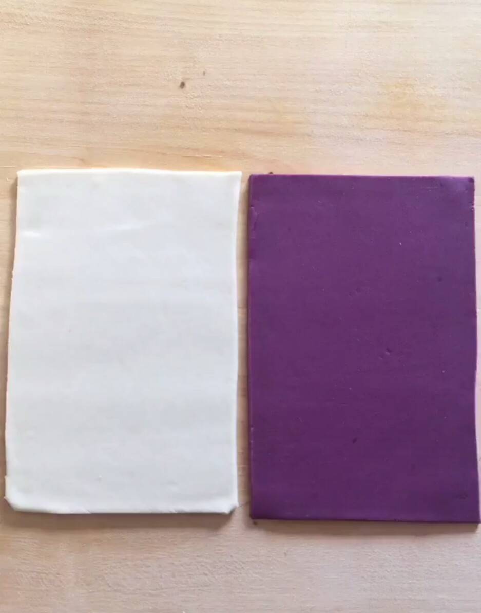 1.准备白色,紫色2种面片