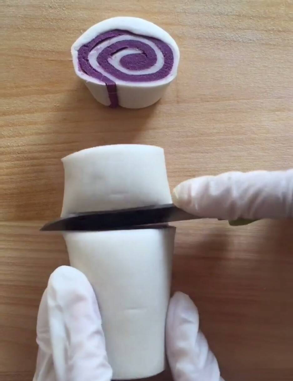也可以在卷起贝壳时候,里面放点豆沙球,然后再放入锅蒸,这个根据喜好了。