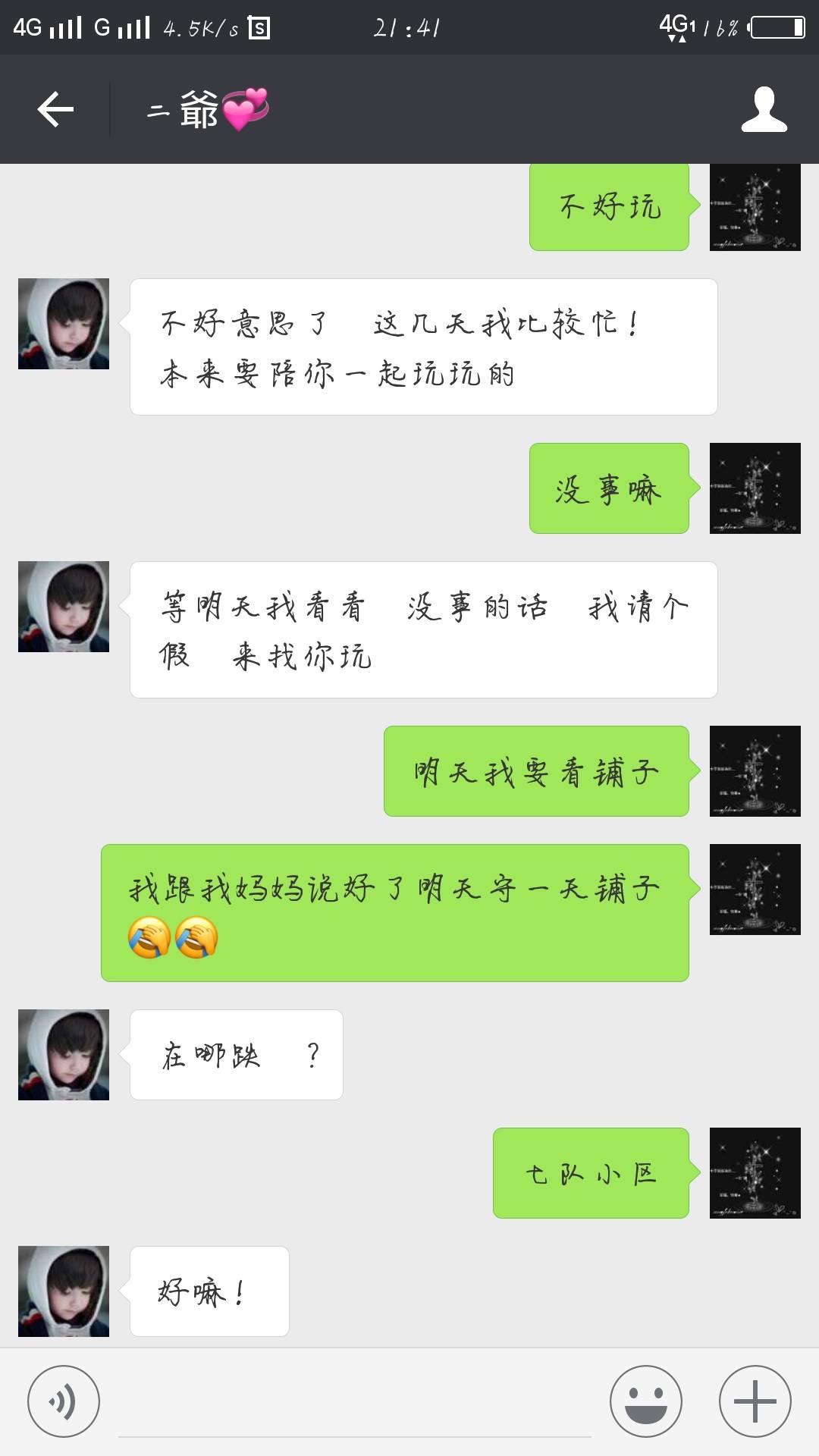 不知不觉的,才发觉二爷在我心中的位置在慢慢的上升,我也不知道是什么原因,好吧,鉴于上次我态度差,我改,今天,我主动给他发信息了,要知道我可是在心里做了何等的挣扎才发的,原谅我是个不会主动的人,害怕自作多情,在考验他的同时又害怕他离去!害怕他经不起我的冷漠,我的假装不在乎,其实还是有那么一丢在乎的啦!😕️