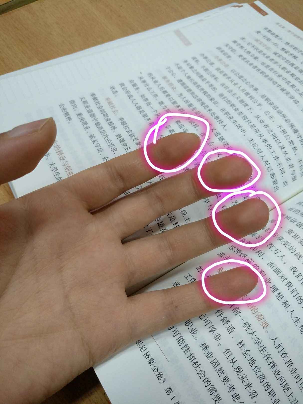 手指疼,一直很疼。吃止疼药就不疼,药效一过就很疼。一双手全疼,