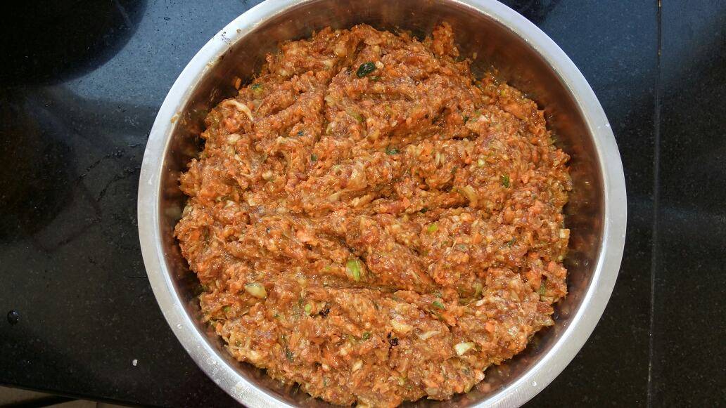 。今天的饺子馅是猪肉、大葱、胡萝卜,胡萝卜用搅拌机打碎,与肉馅和在一起,味道不错嘛!晚上顺便少吃几个哈!来来来,看看过程吧!唉,由于上传照片太慢,只好少发几张照片了!