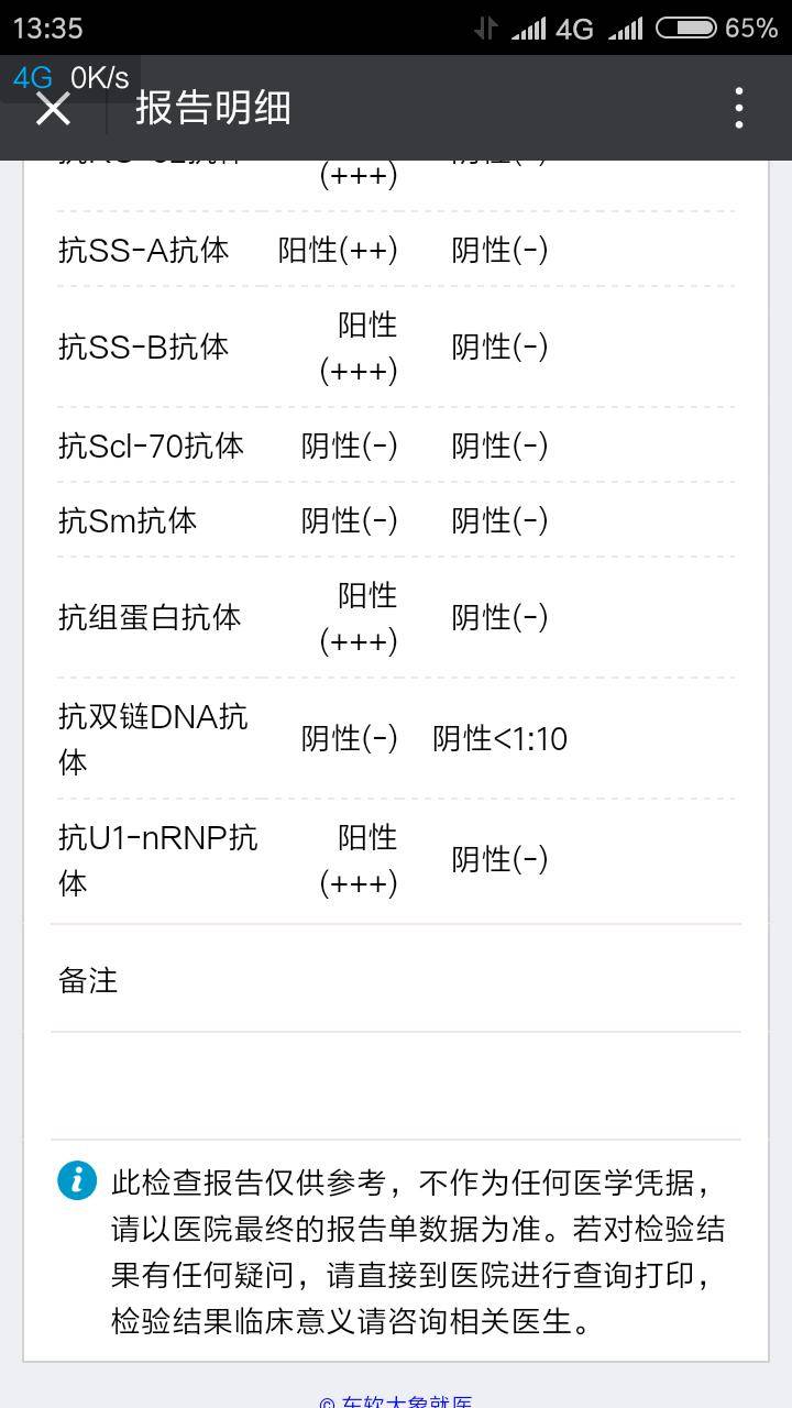 啥的,如果是阳性,我听病友说可能是狼疮的同时还有干燥症或是硬皮病,具体还得问大夫,一切听大夫的