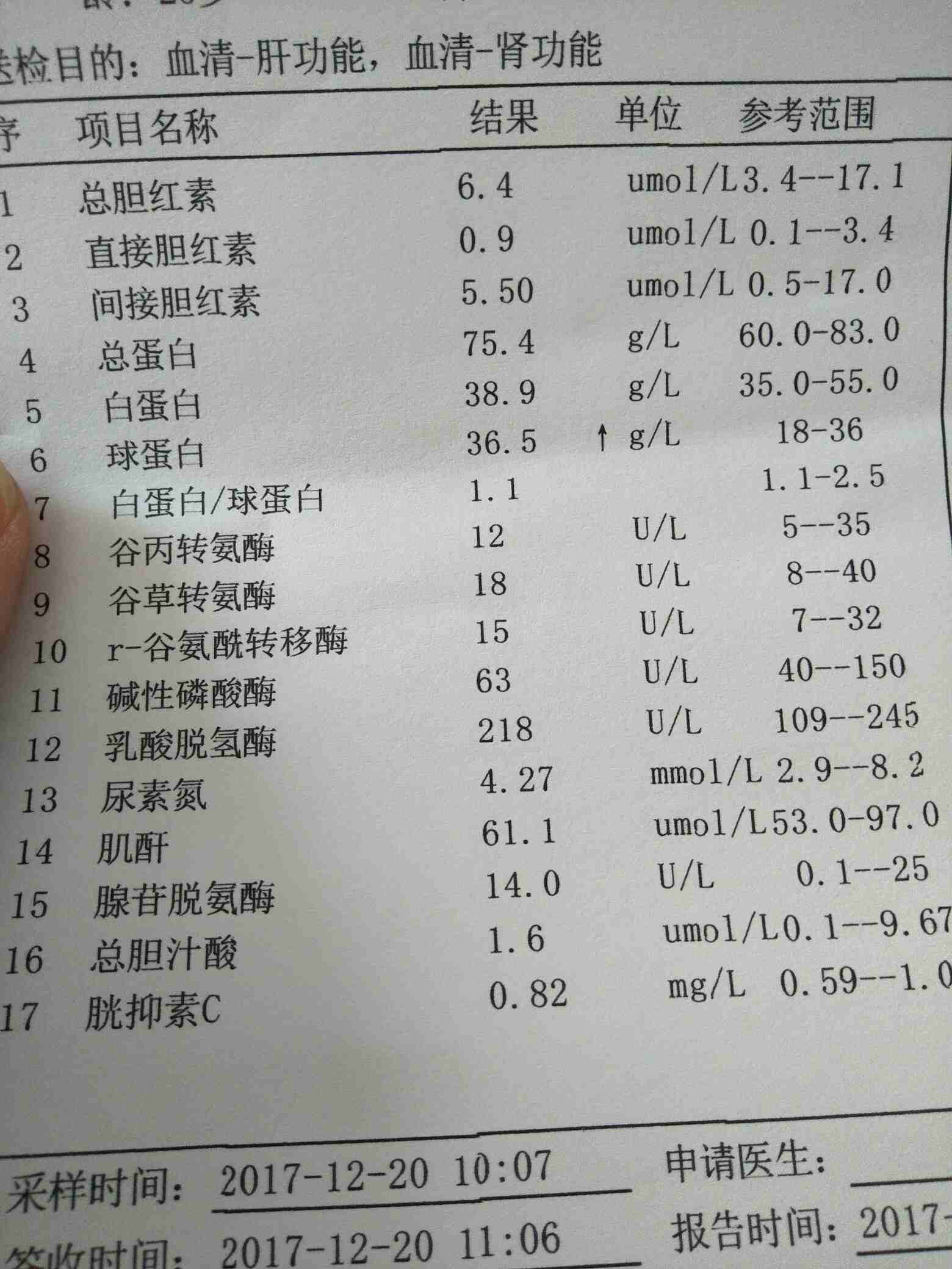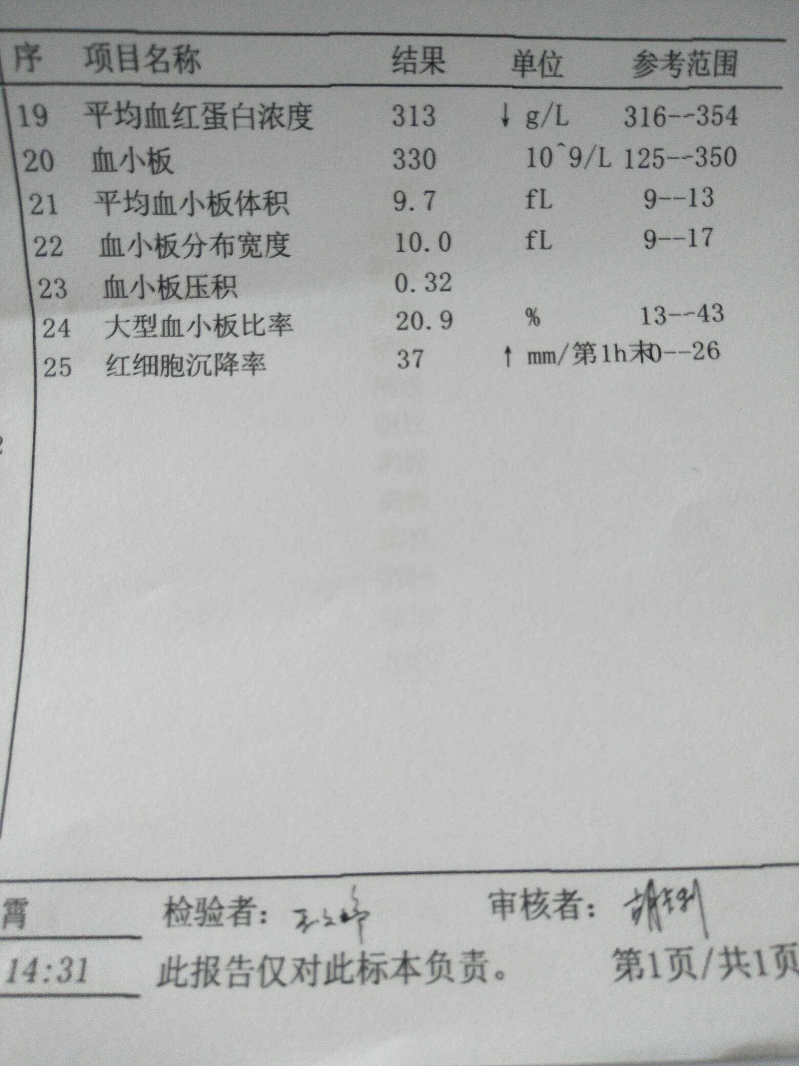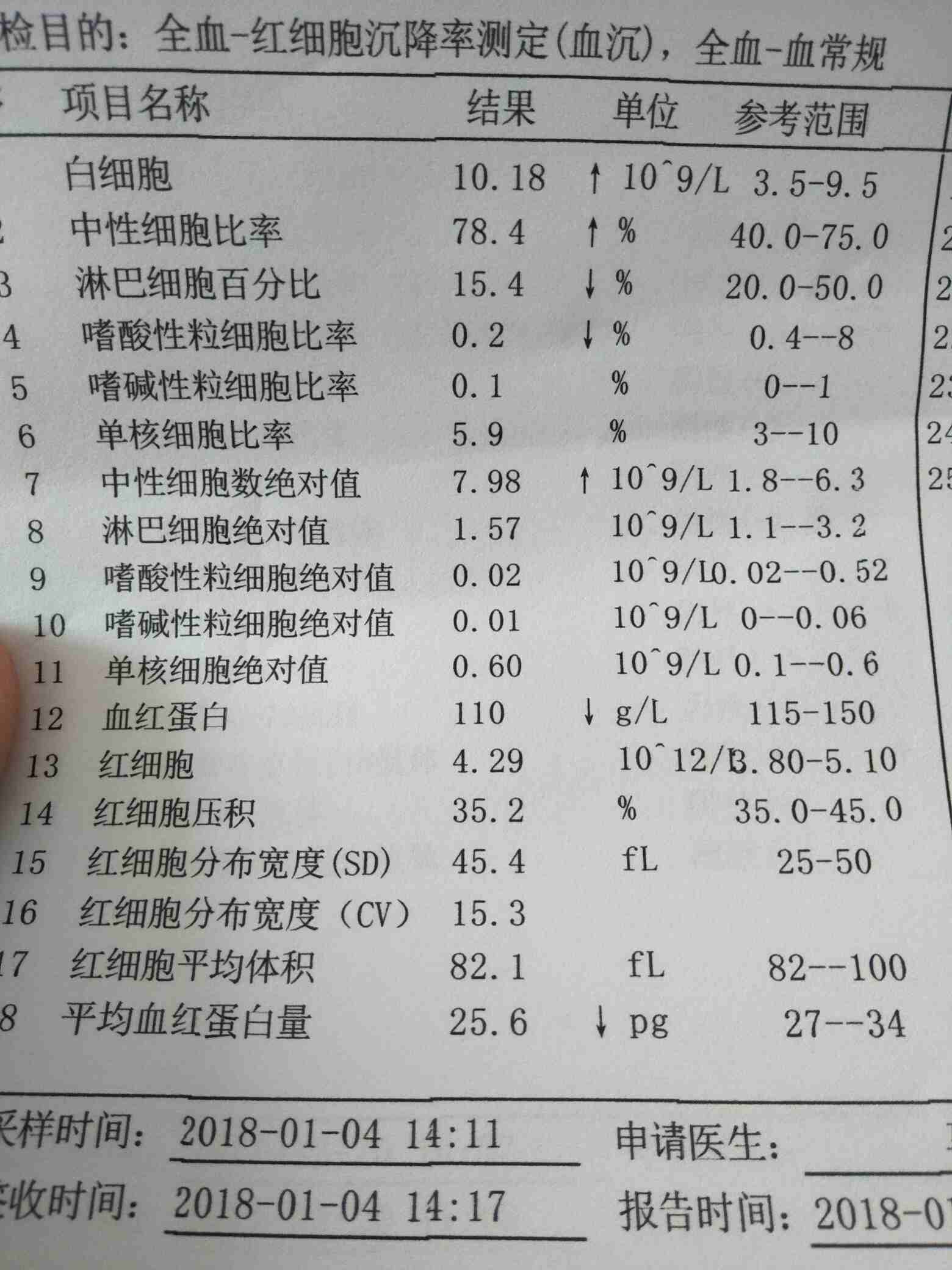 检查结果挺不错,白细胞和血沉有点高,也可能有感染或者伤口引起的