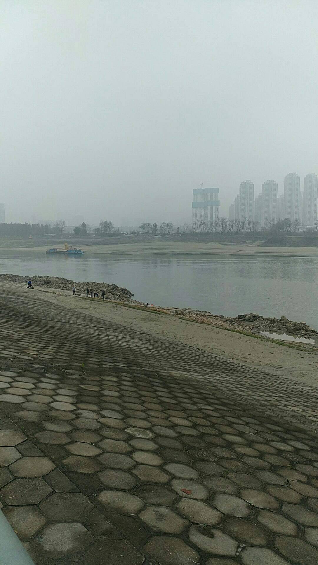 闹腾着沸沸扬扬的中雪,还是没有如期下下来。今天天气转阴,河边的人也多了起来,坚持冬泳的人今天也出来了,河边走路的人也比昨天多了。无风没出太阳的天气,也挺适合走路。