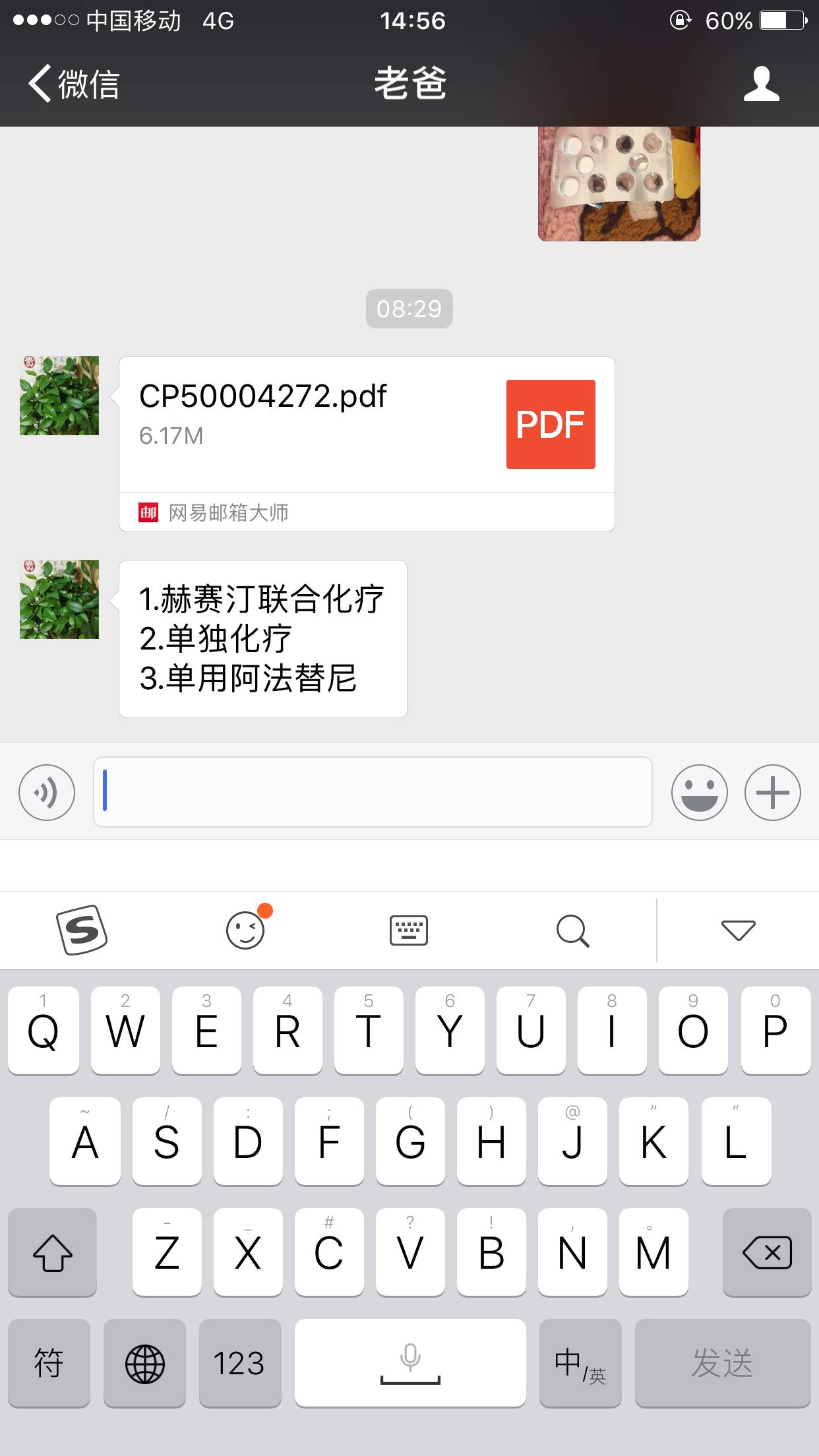 阿法替尼先吃一个月再去做CT看看是否有效。