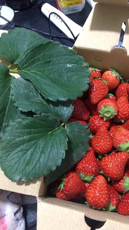客户下午送来四箱草莓给老板,放下两箱后,另两箱拿到我手上了。