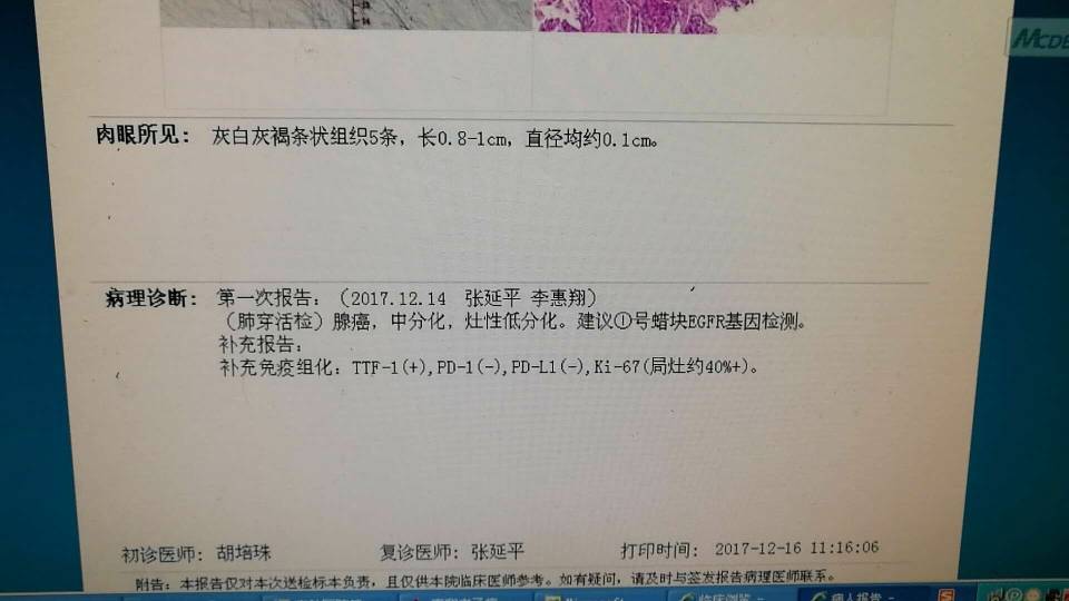 肺癌左上叶癌变,腺癌,术中发现胸膜转移,少量积液,取了病理直接合上,目前已做所有基因检测(EGFR.ALK.ROS1),只有NGS检测发现了21显子出现罕见突变,PD1也检测了,阴性,是先上化疗还是直接上易瑞沙?如果化疗准备先做两周期,然后可否直接试试免疫疗法?家父身体状况一直不错,谢谢各位大哥大姐,父亲比较年轻,后附基因检测及PD1检测结果图