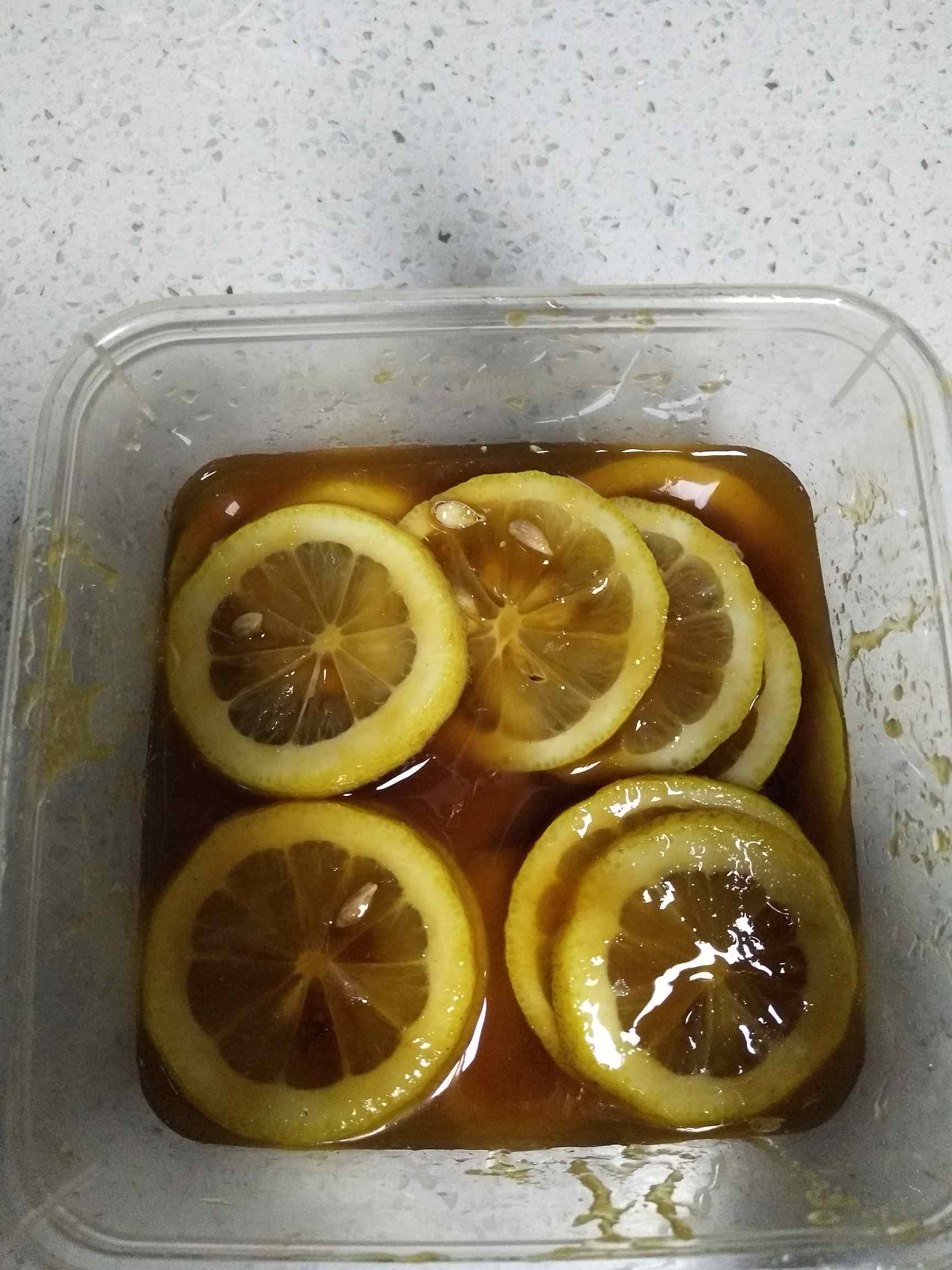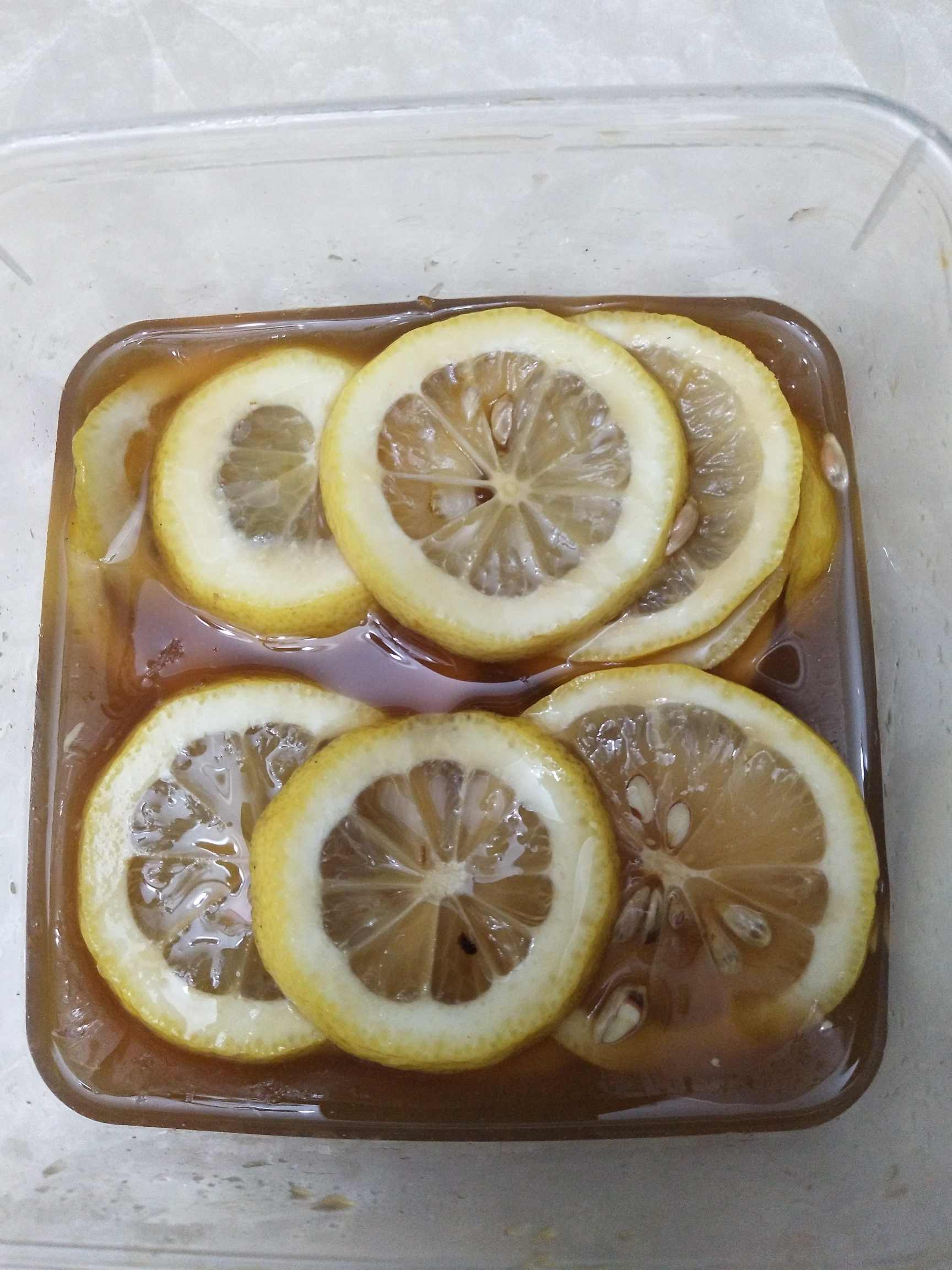 第三步:加入蜂蜜,加入凉开水盖过柠檬片,盖好容器至于冰箱冷藏中。