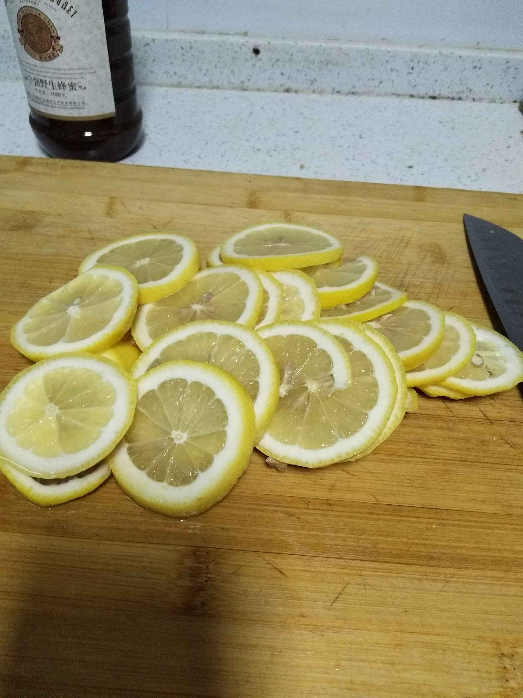 第二步:取出柠檬切片(一只柠檬切15-20片左右),放入准备好的密闭的容器中。