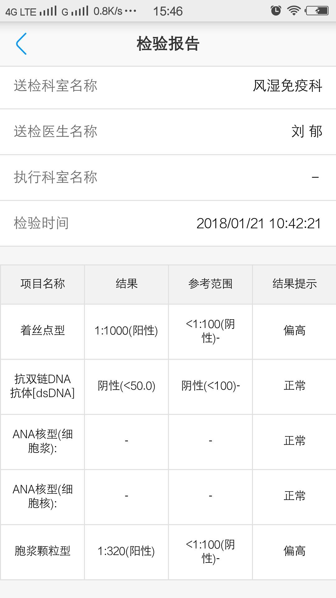 这次尿酸正常啦,之前一直高,但怀孕了血沉高啦很多。其他指标也很多高了低啦的,还有那个着丝点型一直阳性。