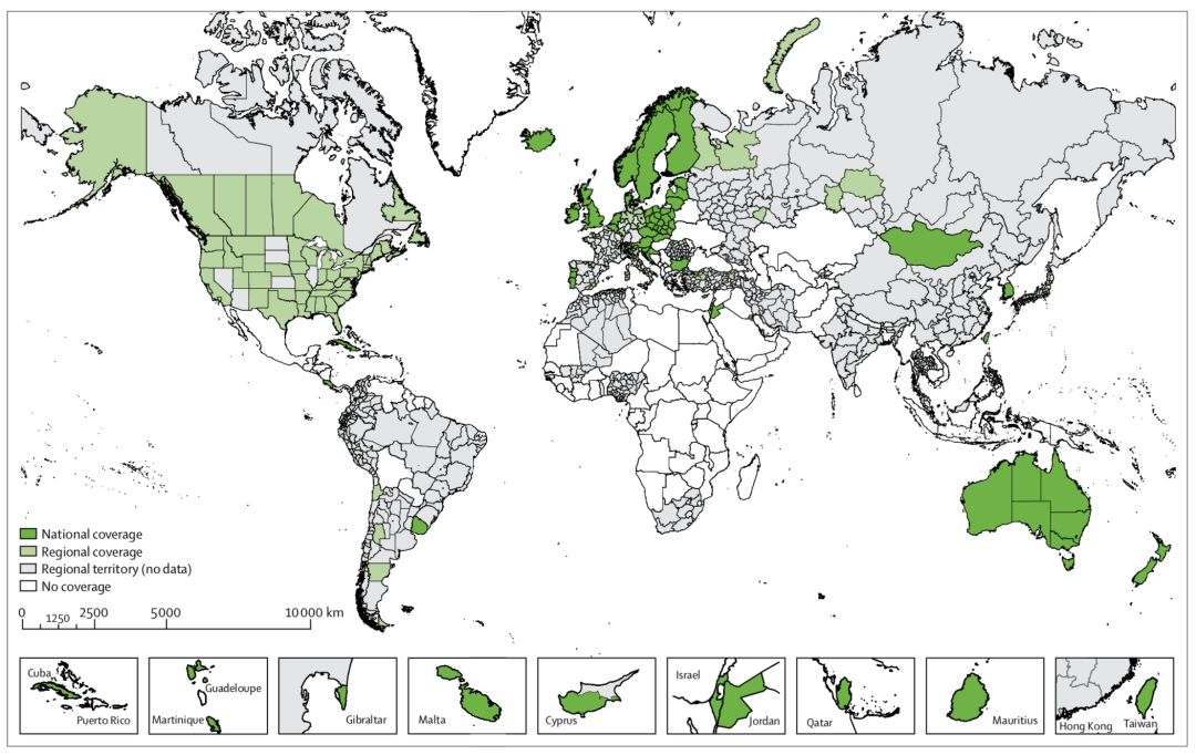 此次发表的CONCORD-3研究将全球癌症生存率数据更新到了2014年,合计覆盖全球近10亿人,占全球人口14%。在提供统计数据的71个国家/地区中,47国家/地区实现了人群数据全覆盖,27个属于中低收入国家/地区。