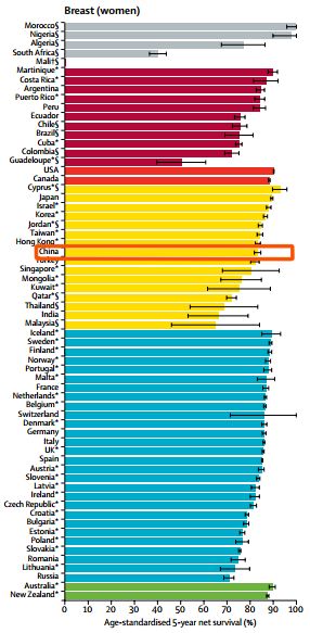 但是,你知道自家癌症生存情况在全世界范围的水平吗?我们已经做到什么程度了,哪里还需要努力?闭门造车可不行,毕竟大清已经亡了呀。
