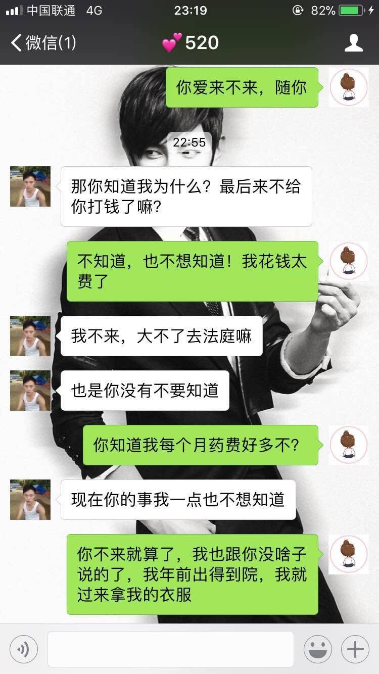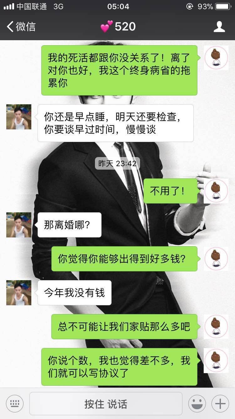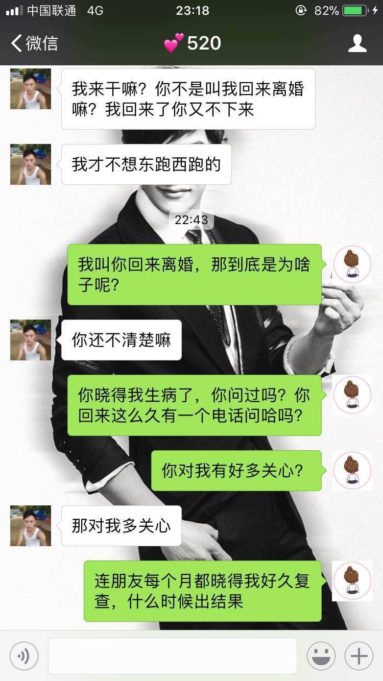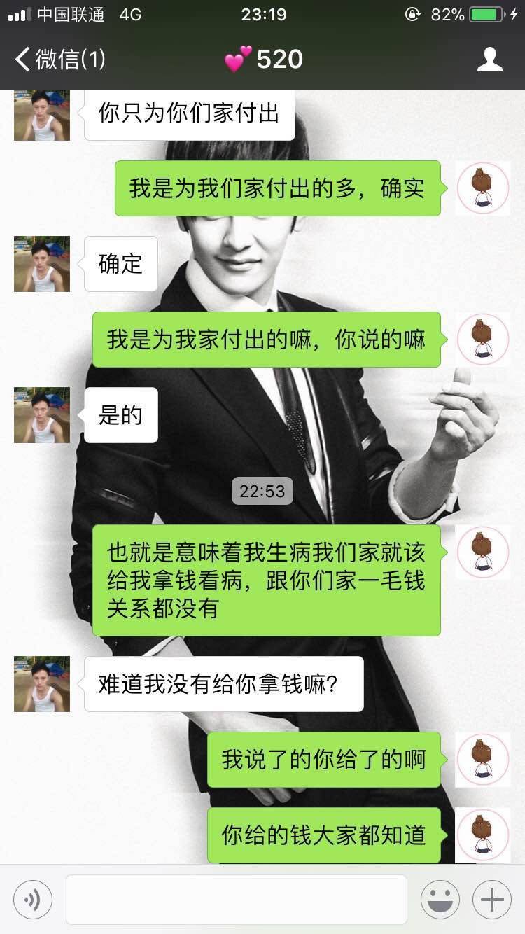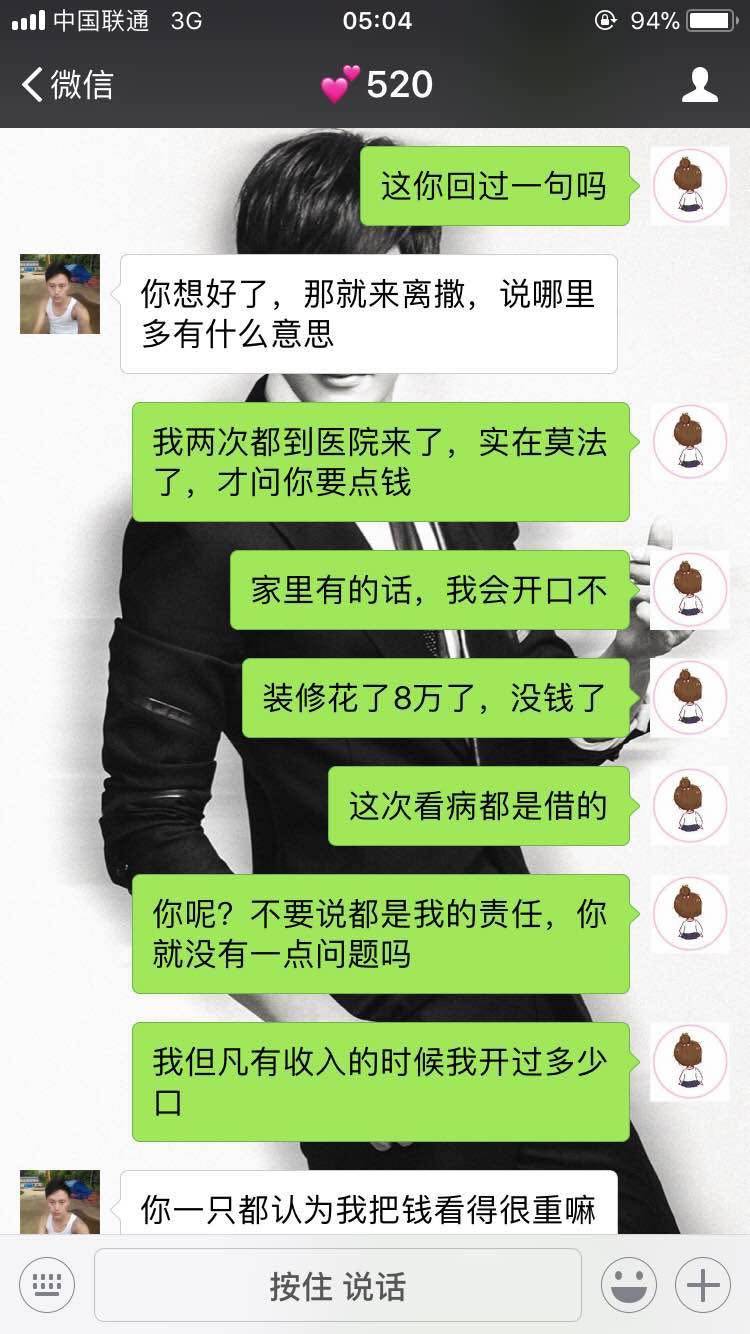 结婚到我患病这一年多,你给了我2万3,其他时候呢?一年给我的电话问候有超过10个电话,到头来我说我想离婚,你就一直抓到我不放,其实你现在的所做所为难道不是想离婚吗?看到快过年了,我在医院住起,你却是这样,我就想你们告诉我,到底我错在哪里?我们家这样难道也是错吗?看不到图,那我再传一次