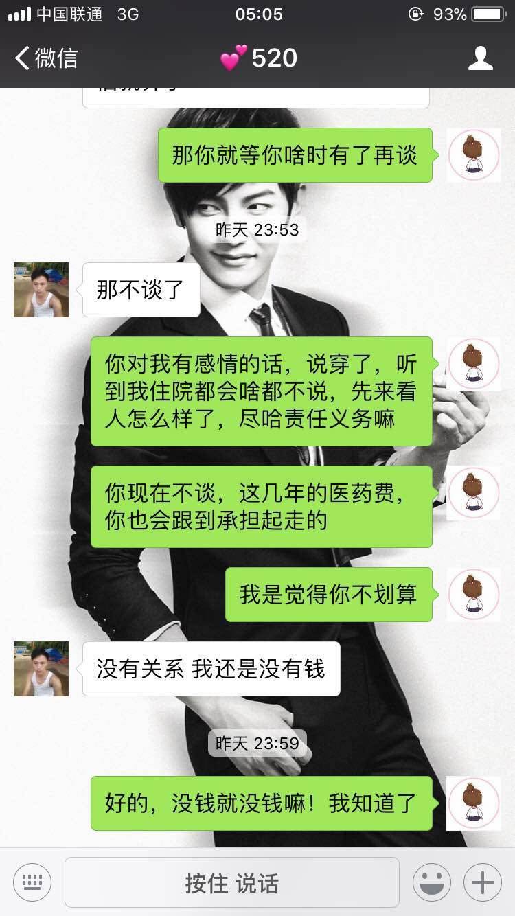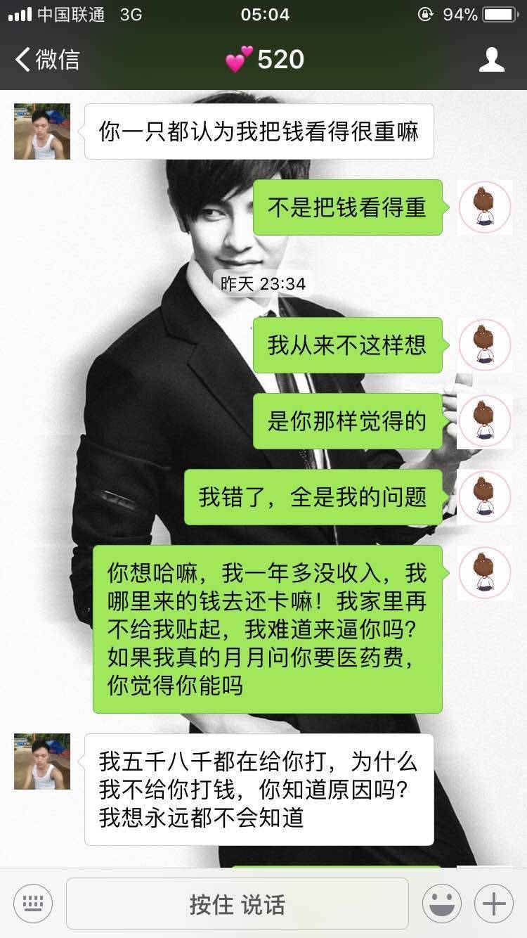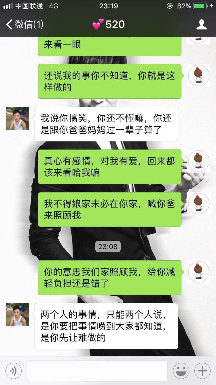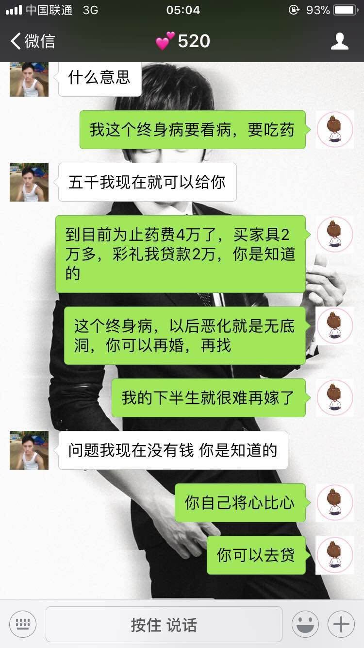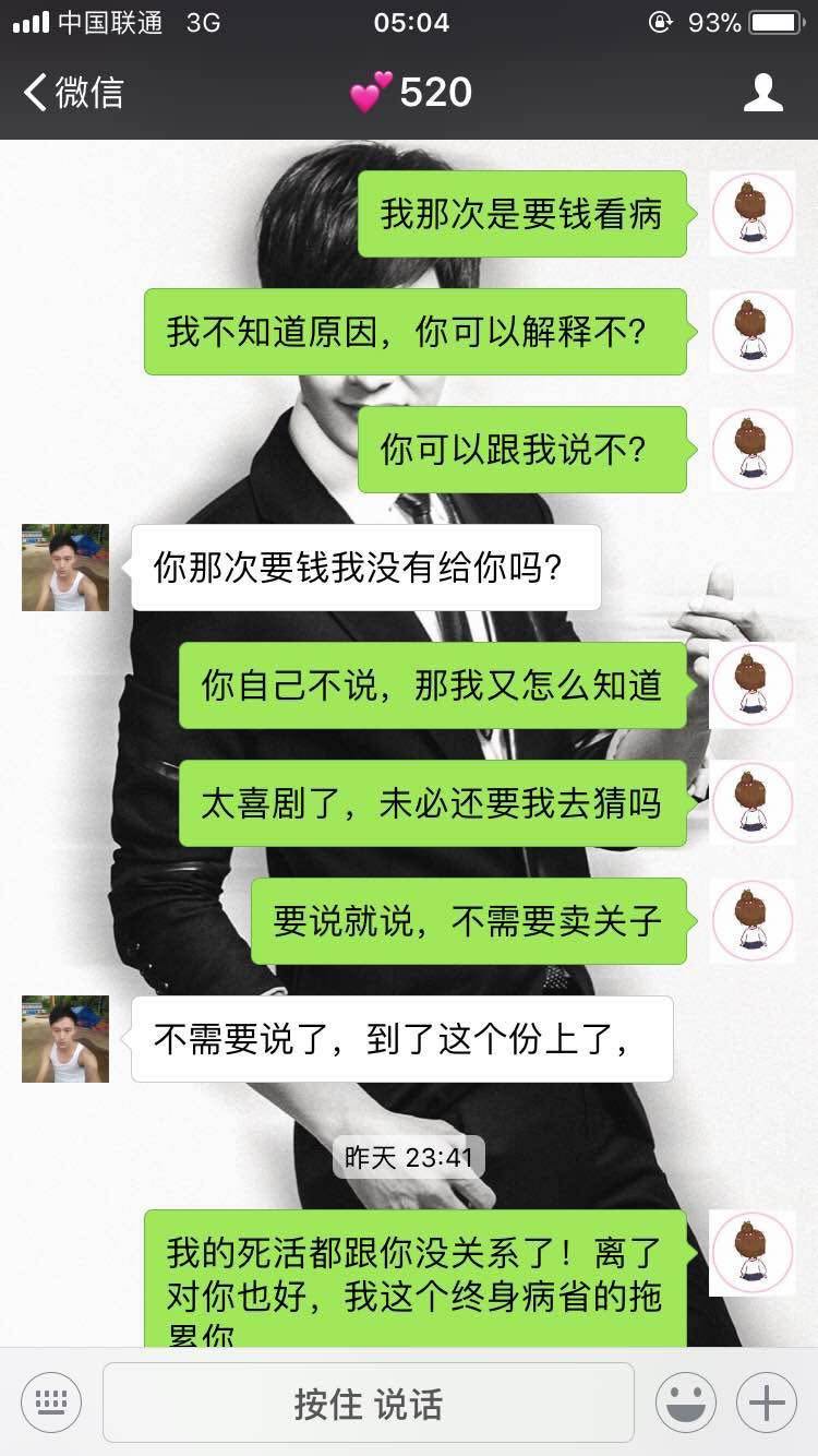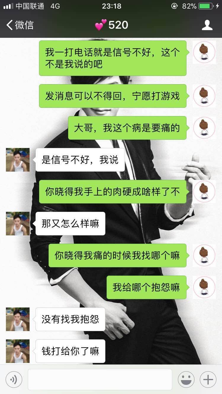 结婚到我患病这一年多,你给了我2万3,其他时候呢?一年给我的电话问候有超过10个电话,到头来我说我想离婚,你就一直抓到我不放,其实你现在的所做所为难道不是想离婚吗?看到快过年了,我在医院住起,你却是这样,我就想你们告诉我,到底我错在哪里?我们家这样难道也是错吗?看不到图,那我再传一次