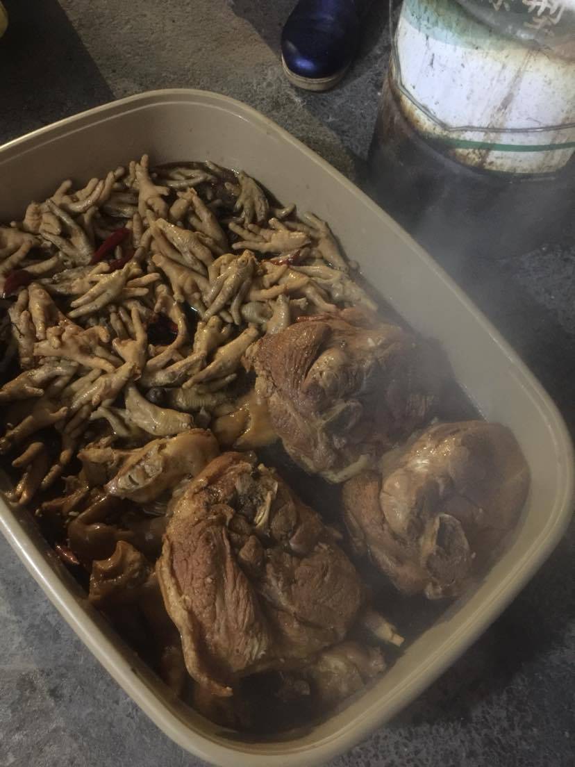 昨天开始,纯妈就帮我们这几个不会做饭的,买好了猪蹄,蹄胖,鸡爪,鸭胗啥的一大堆。晚上又是洗又是收拾的,弄到半夜。