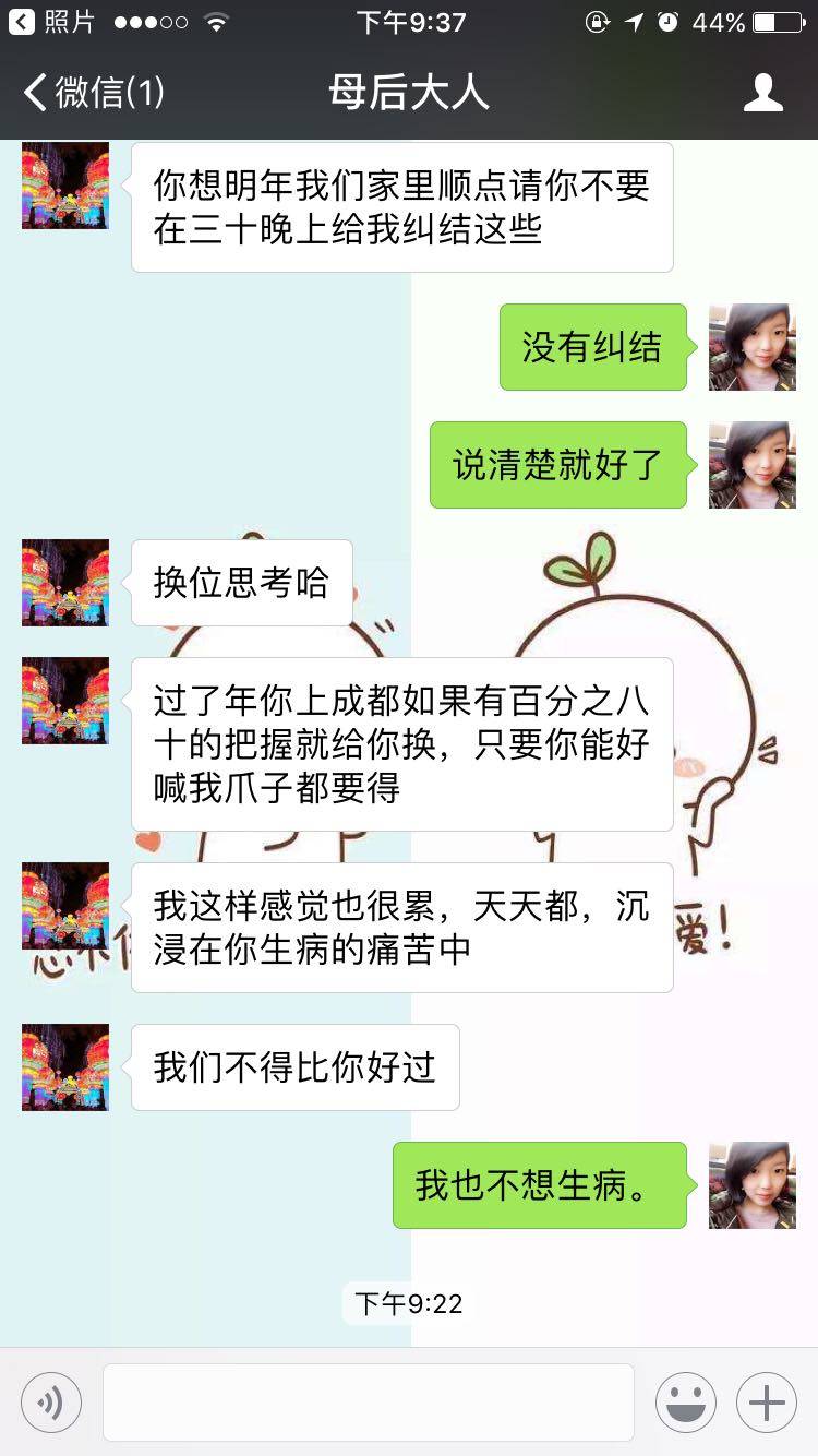 父母不易,生病不是他们造成的,要懂得感恩父母,要知父母恩,膝下抱子孙。一起努力争取尽快解决问题才好。