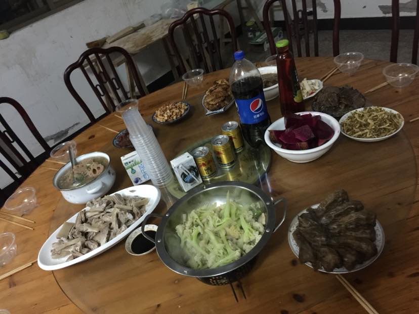 主家摆大桌,几十道菜来招待我们。