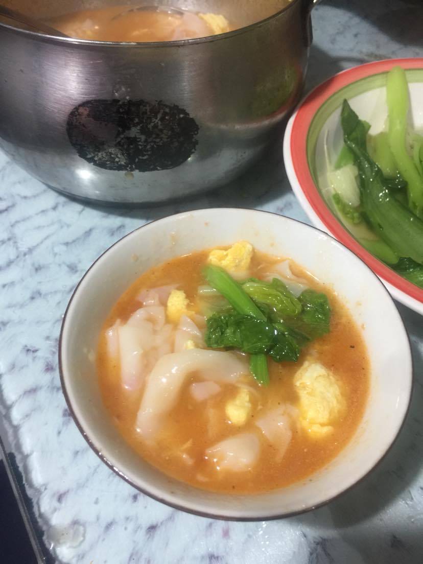 晚餐,用吃不完的饺子皮做了面片汤。他吃得很开心,摸着肚皮砸着嘴。。