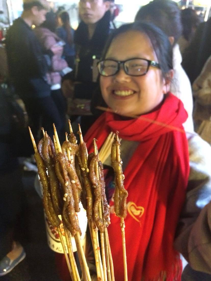 今天夜市摊位不多,但逛的人还是人山人海的挤。还来了些老外摆的摊位。