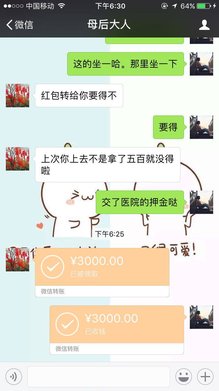 我妈还是在说,早知道这样,当初应该把我生到水池里淹死。。。。。然后给我转了3000。。。。。这是换肾之前最后一次要钱✌️。明天又是新开始。我知道她只是嘴厉害,再加上我脾气不好,就经常火山撞地球。说我爸爸,最近几年也是挣了不少钱的,但是。。。。都被我。。。。花光了。好吧,这点我承认。
