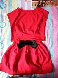 红上衣本来是配了一条给裙子,也很好看,为了买红上衣就只能一起买了,因为人家不单卖。红裙子上面原本配的是黑上衣,也是一样的道理,为了裙子买了一身,然后两身拼成了一身。