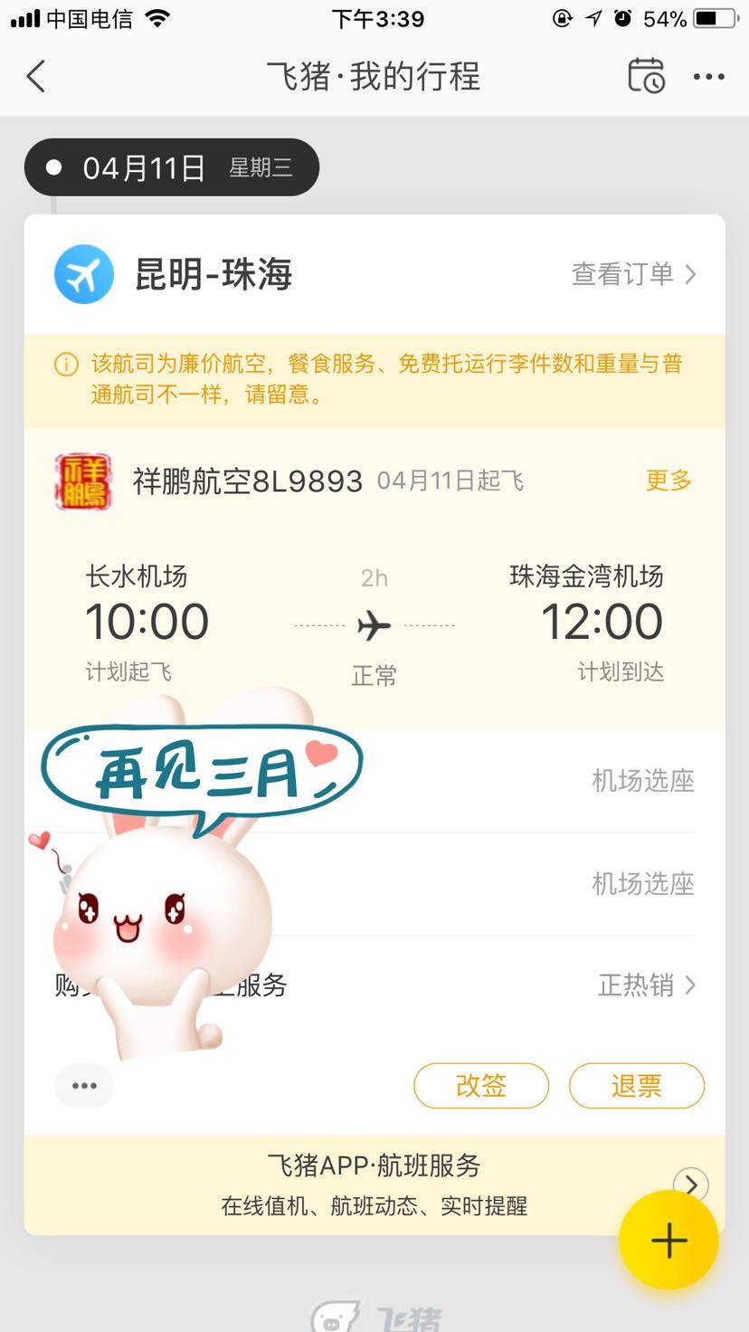 然后打开淘宝在订单里寻寻觅觅,寻寻觅觅了半天也没发现,正打算截图举证他的时候,余光瞄到了行程提醒⏰……打开后在飞猪旅行订单里找到了旅行计划…