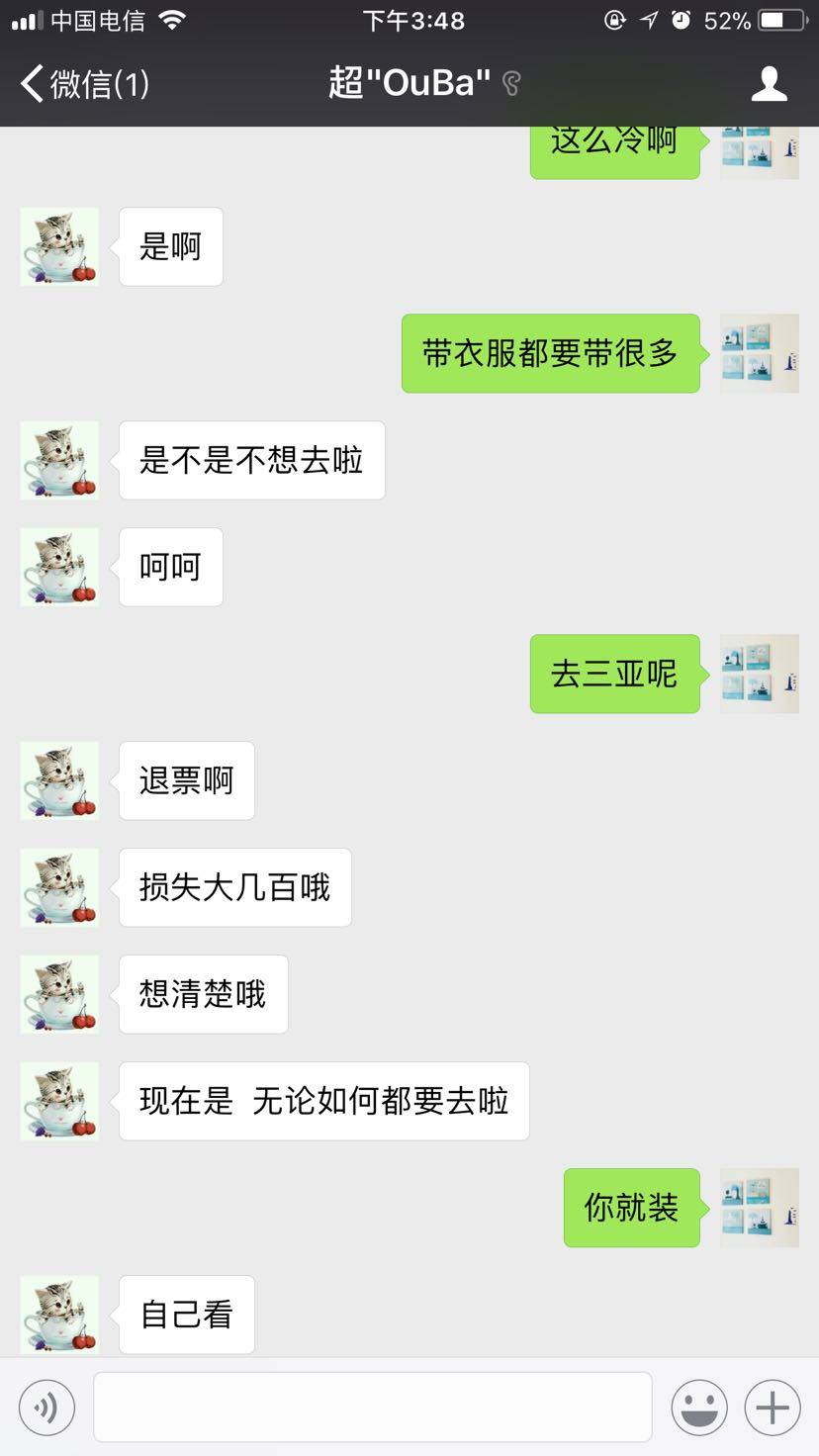 后面反应过来以后问他,你刚刚说几号到几号来着?又问他云南现在冷不冷,他说5-23度的时候我暗暗感叹原来觉得现在不是去的好时候啊,又漫天想象的打算换个目的地的说了句去三亚呢?心想反正去不了,吹吹牛呗!(*^o^*)