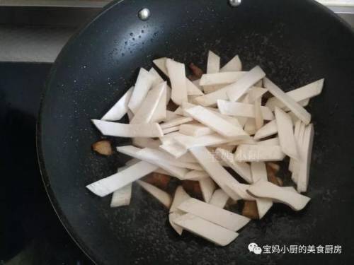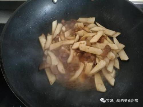 2)杏鲍菇和猪肉一起烧更筋道好吃,带皮的肉炒菜就要加点水烧一下,这样肉皮不硬,不油腻,菜也好吃