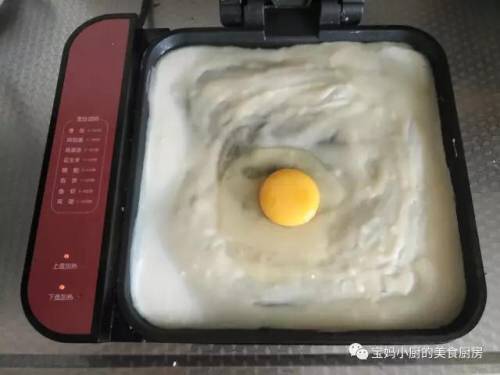 9.电饼铛大热气慢慢变小,鸡蛋发皱变黄即可出锅。