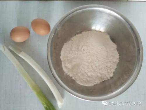 食材:面粉200克,鸡蛋2个,大葱1根,植物油少许,盐半小勺,十三香半小勺